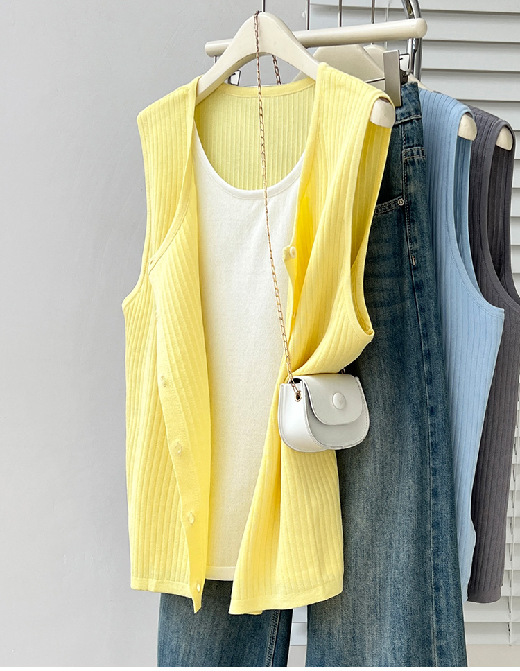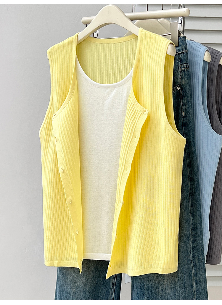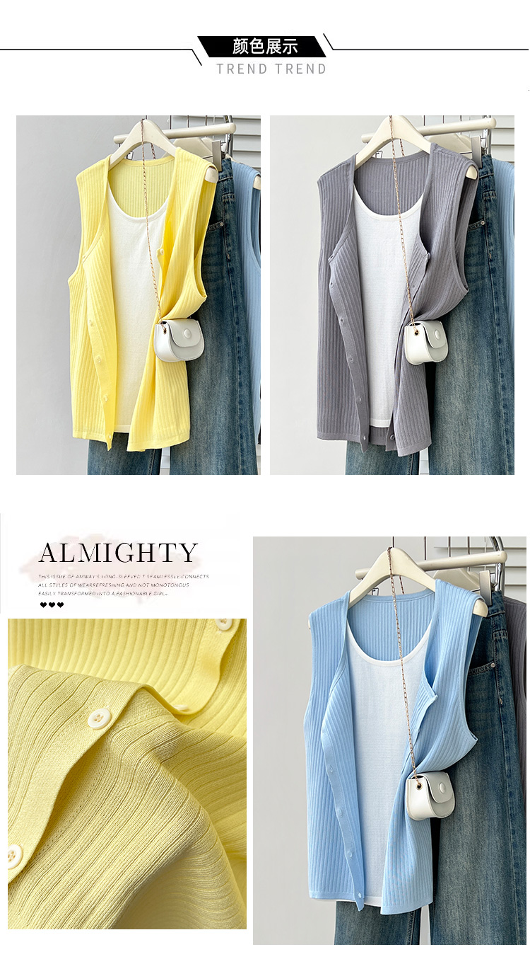 디자인 센스 나비 자수 스탠드 칼라 민소매 맨위 여성 여름 새로운 국풍 베이지 색 단추 품격 인사이드 가져 가라. 트렌디
