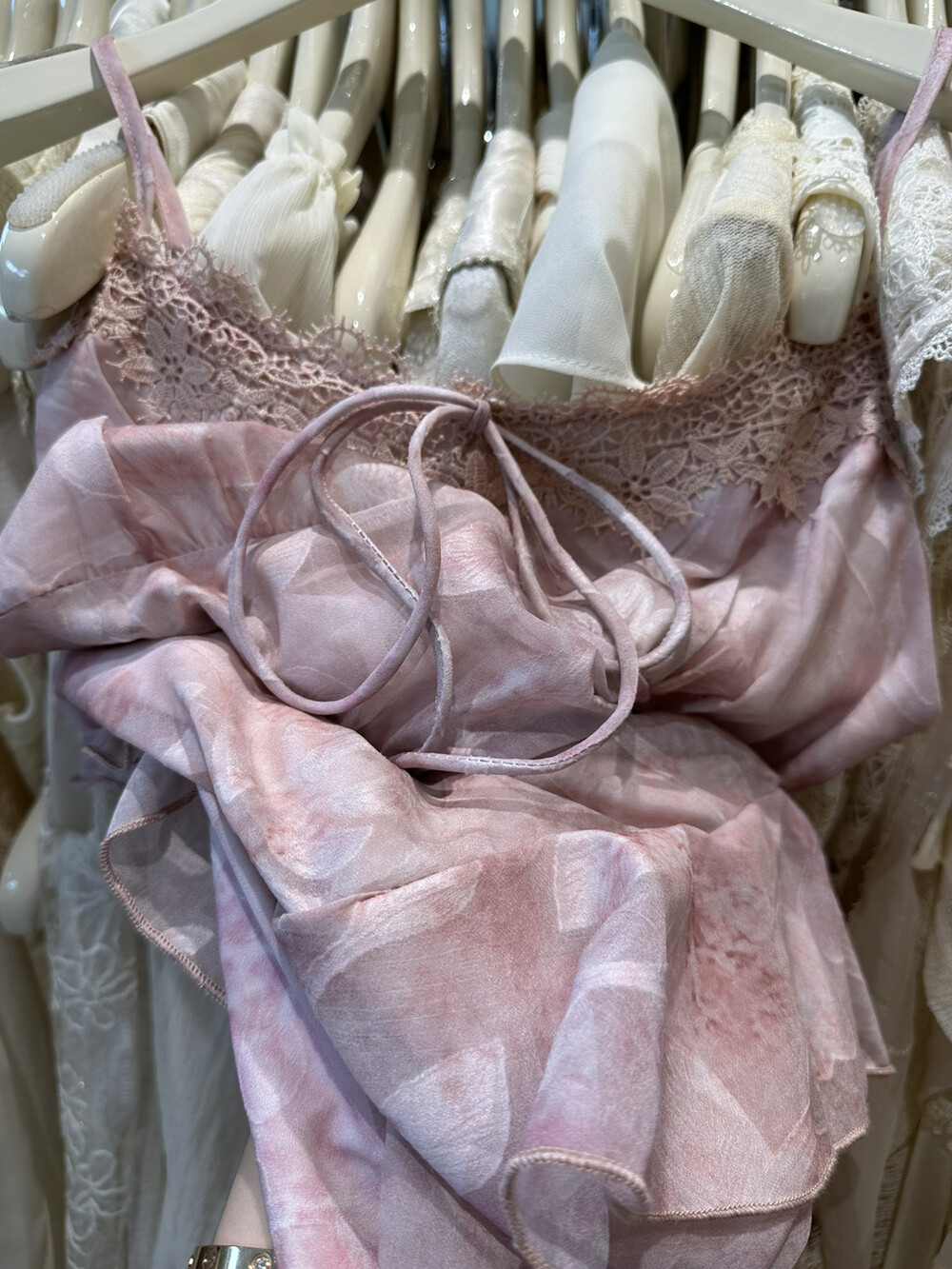 건조한 장미 새로운 디자인 센스 작은 대중 고급 센스 주간 실크 프릴 다크 드레스