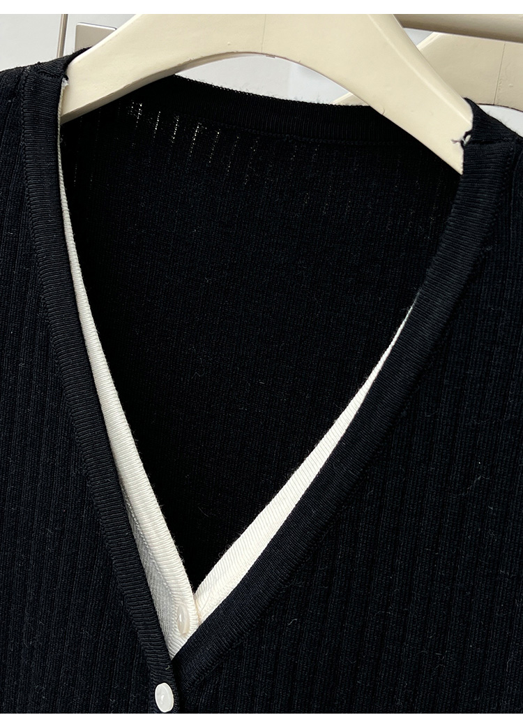 지방 mm 레트로 chic 외국 가스 라운드 넥 반팔 니트 오픈 가디건 여성 여름 새로운 슈퍼 잘 생긴 홀로우 아웃 슬림해 보이는 맨위