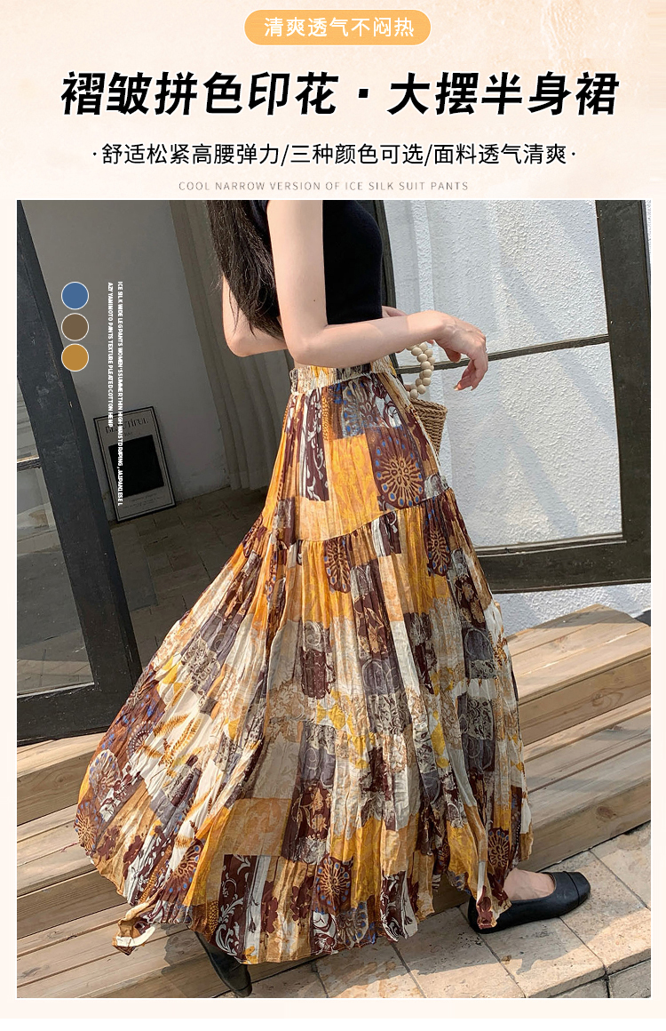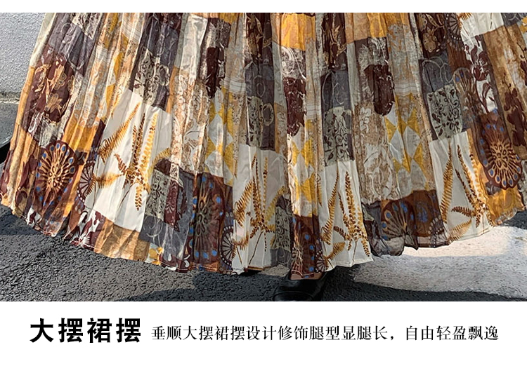 실사 2026 여름 표지 넓적 다리 슬림해 보이는 주름 쉬폰 캐슈 꽃 반신 한 마디 롱 스커트 큰 진자 우아한 요정 치마