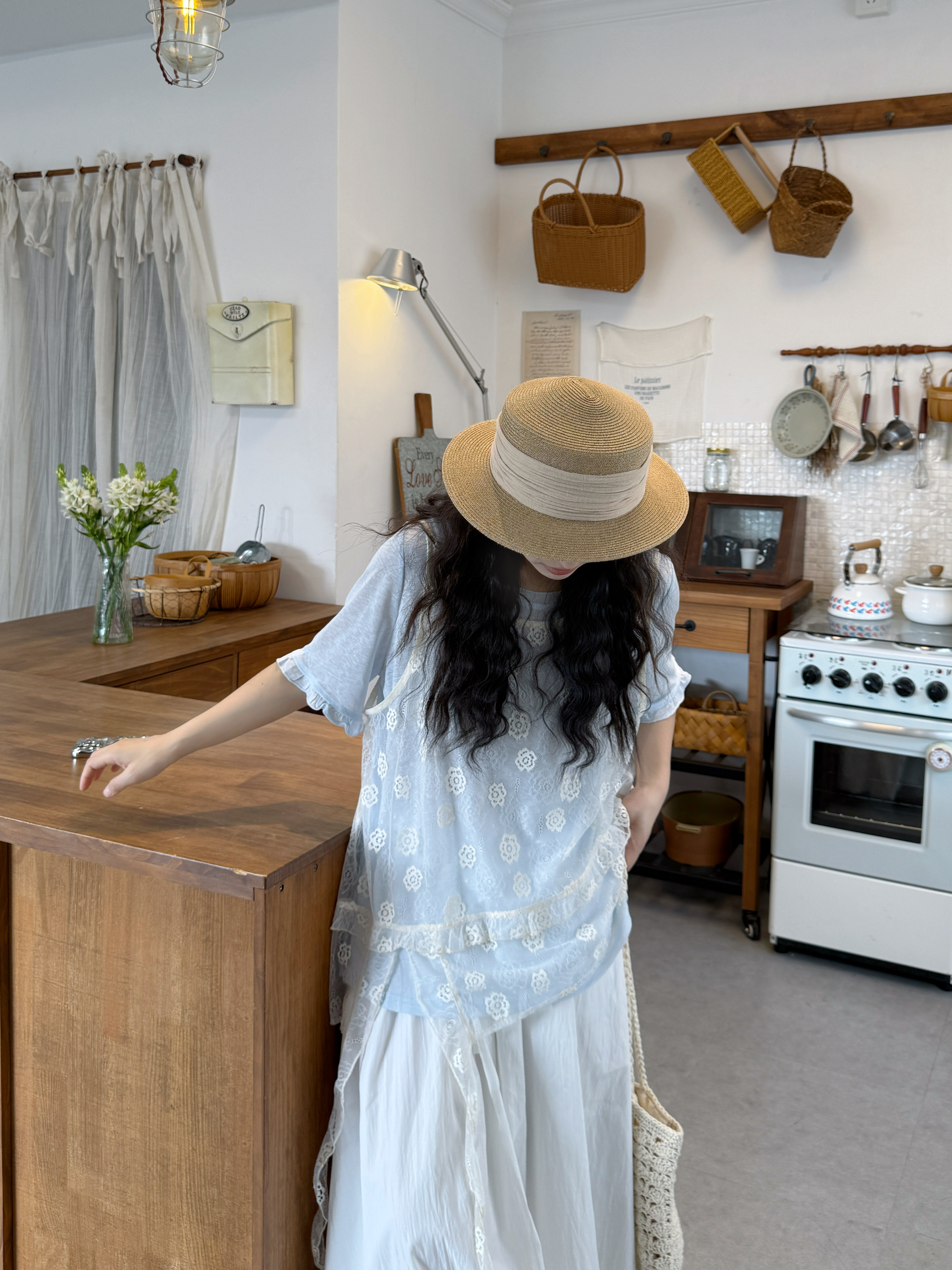 실사 레이스 베이비 칼라 루즈핏 반팔 셔츠