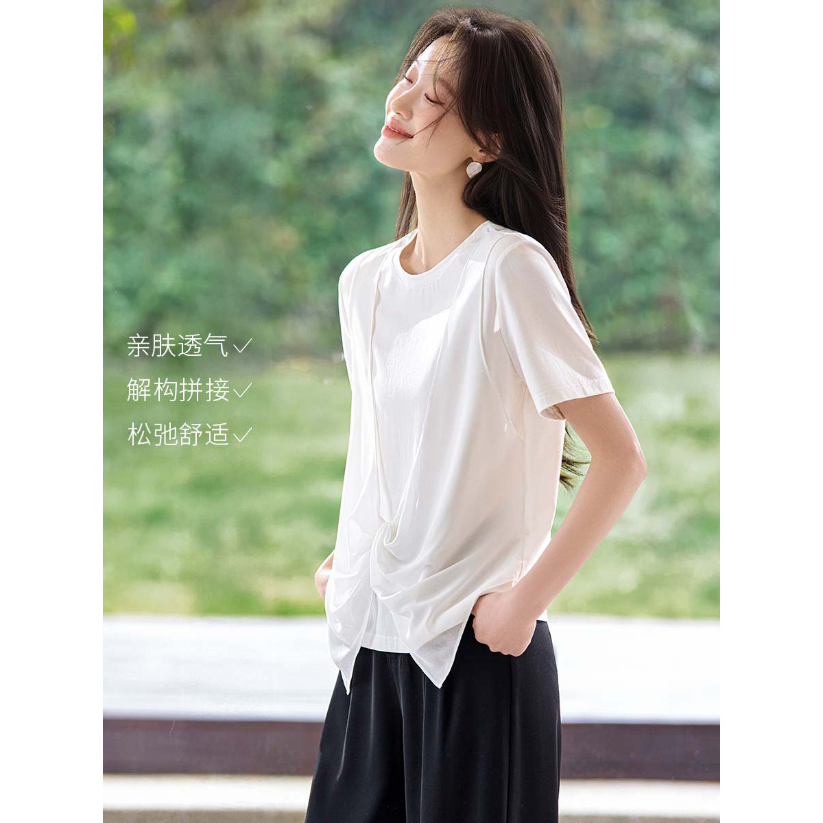 2026 여름 새로운 페이크 레이어드 비틀림 디자인 센스 일상 캐주얼 미학 다용도 티셔츠
