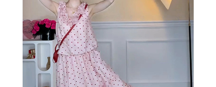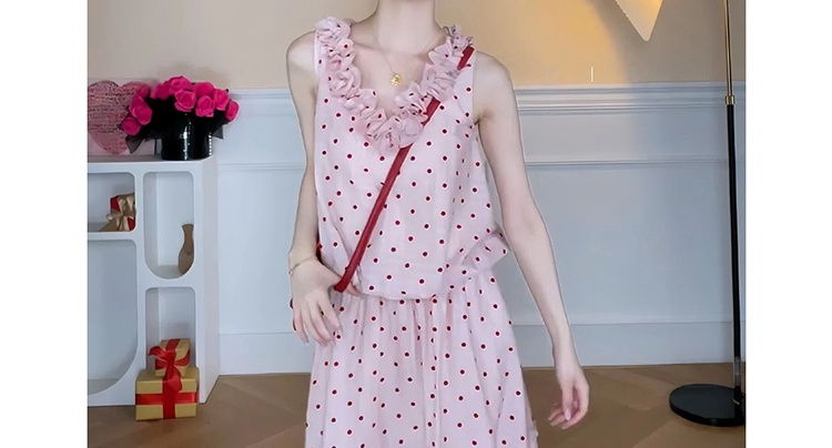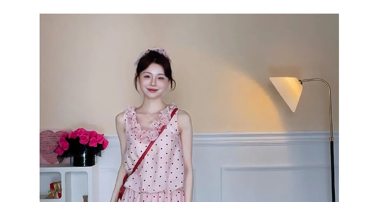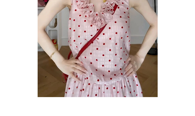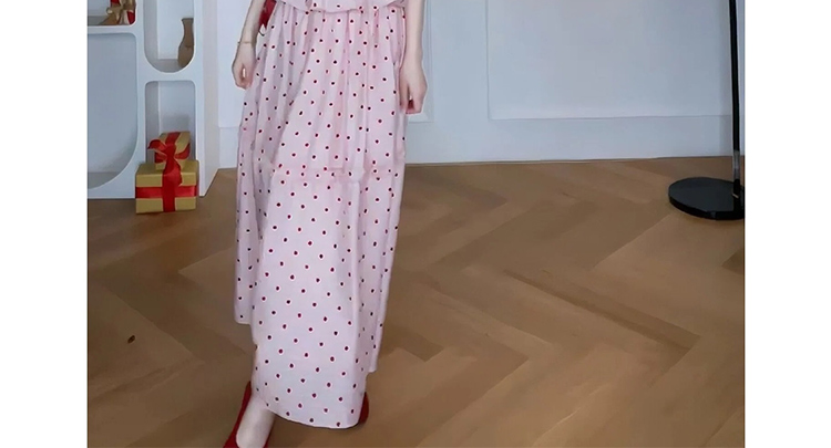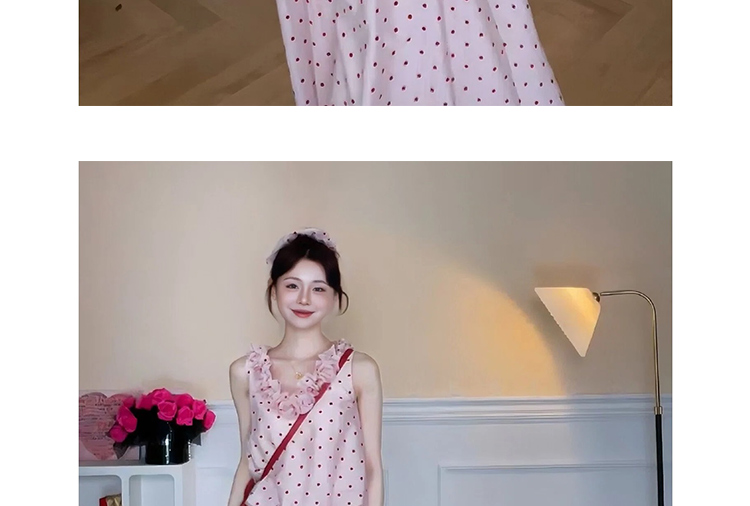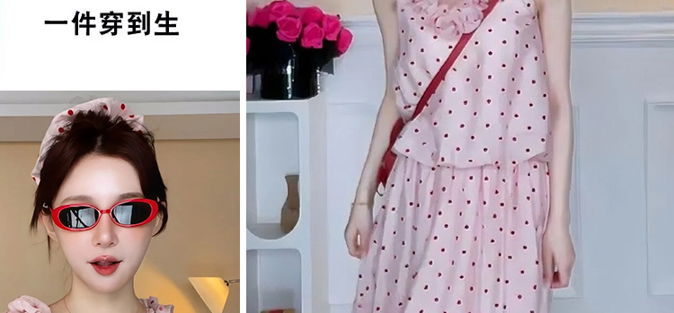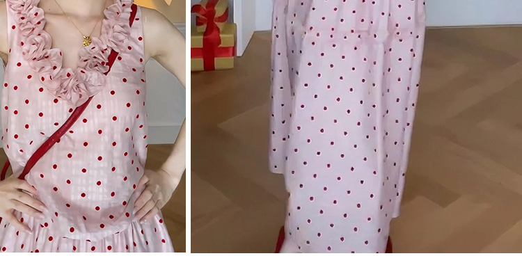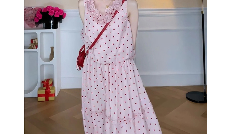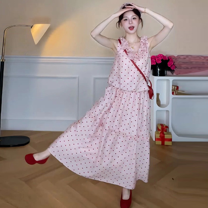 지금 임산부 한 부서 달콤함 식물 플러시 도트 무늬 세트 여성 여름 V넥 민소매 맨위 허리 수축 슬림해 보이는 롱 스커트 투피스 세트