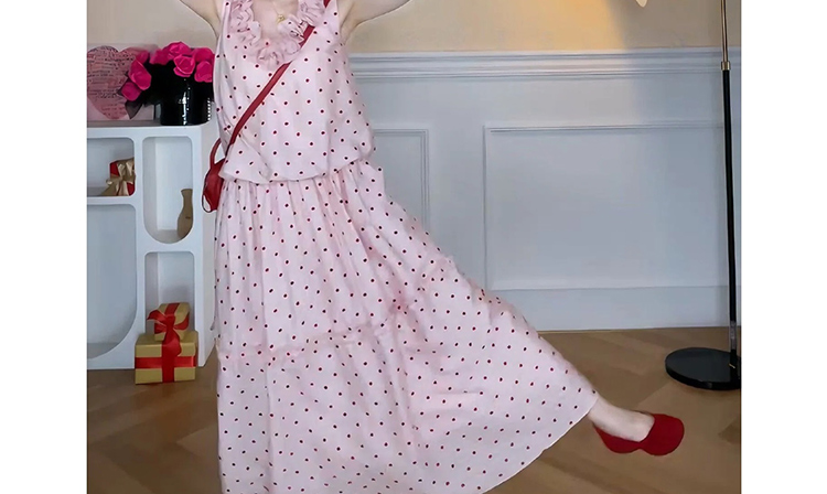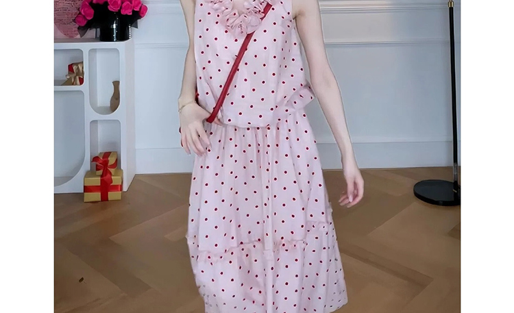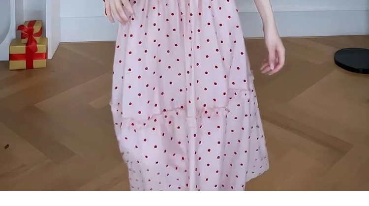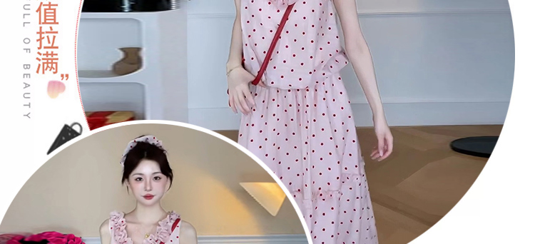 빅 사이즈 휴가 바람 디자인 센스 단색 프랑스식 도트 무늬 작은 날다 소매 여성 드레스 여름 허리 수축 슬림해 보이는 A라인 스커트