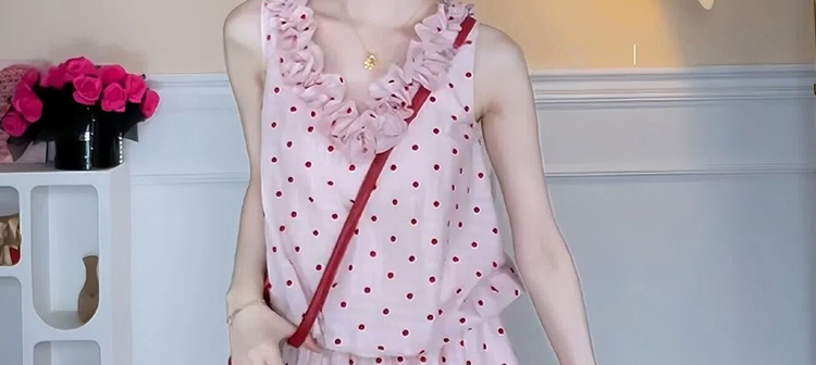 임산부 여름 드레스 전체 집합 느슨함 착용 가져 가라. 한 부서 프릴 조끼 맨위 도트 무늬 와이드 레그 팬츠 세트 여성