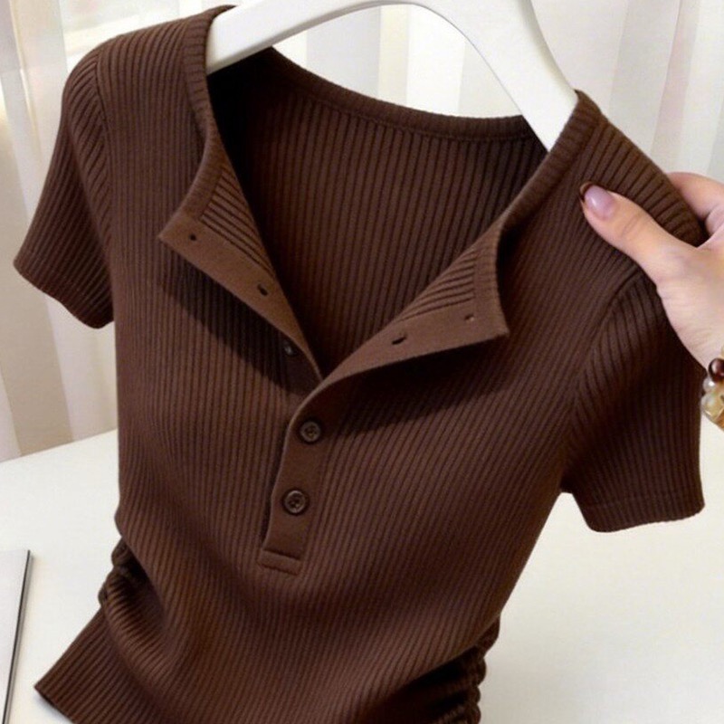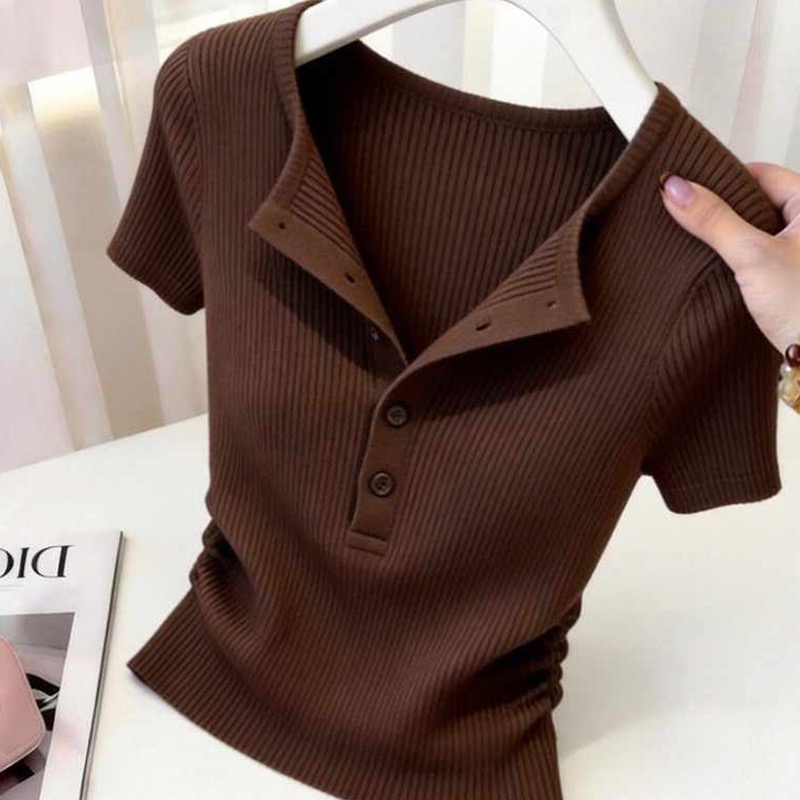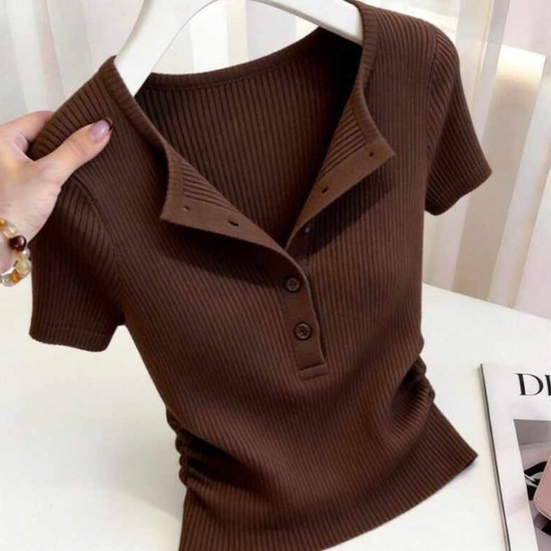 화이트 POLO 칼라 반팔 니트 스웨터 여성 2026 여름 새로운 다용도 티셔츠 고유 한 아름다운 그레이트 봐. 의류