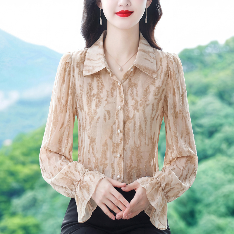 실사 2026 봄 가을 새로운 고급 쉬폰 블라우스 여성 맨위 다용도 오픈 가디건 루즈핏 슬림해 보이는 기본 셔츠 여성