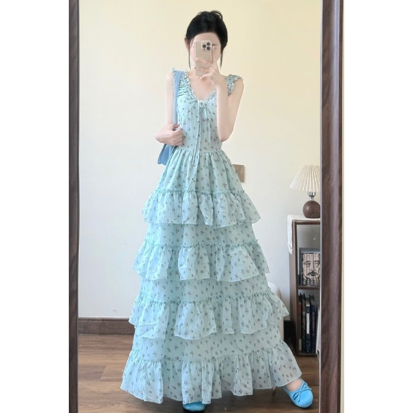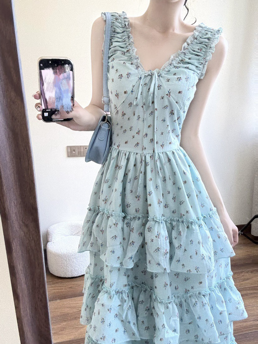4.3 신제품 westayone 박하 녹색 꽃무늬 여성 드레스 여름 2026 새로운 작은 키 롱 스커트