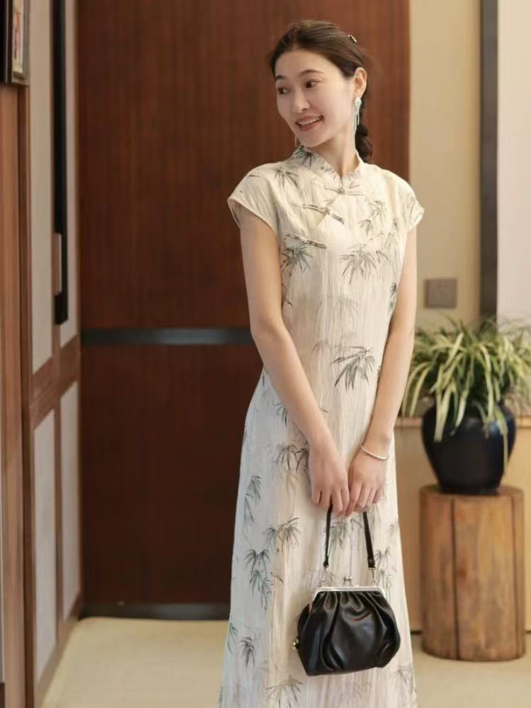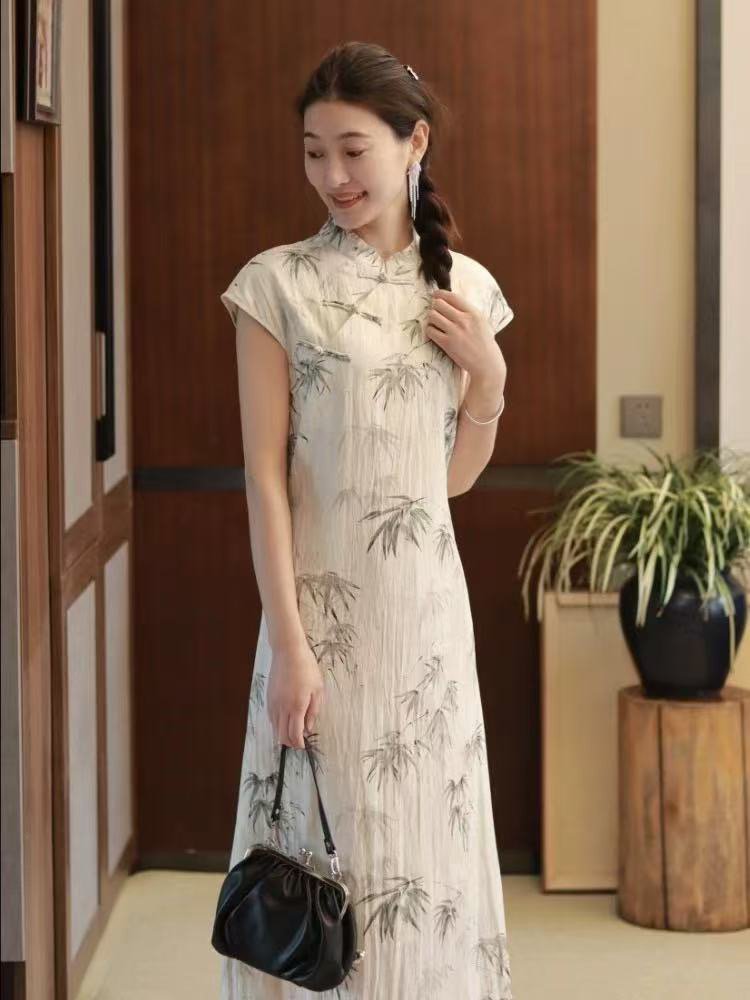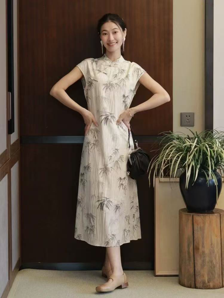 2026 새로운 레트로 라미 드레스 젠 롱 스커트 여성 중식 국풍 프린트 개선 치파오 드레스