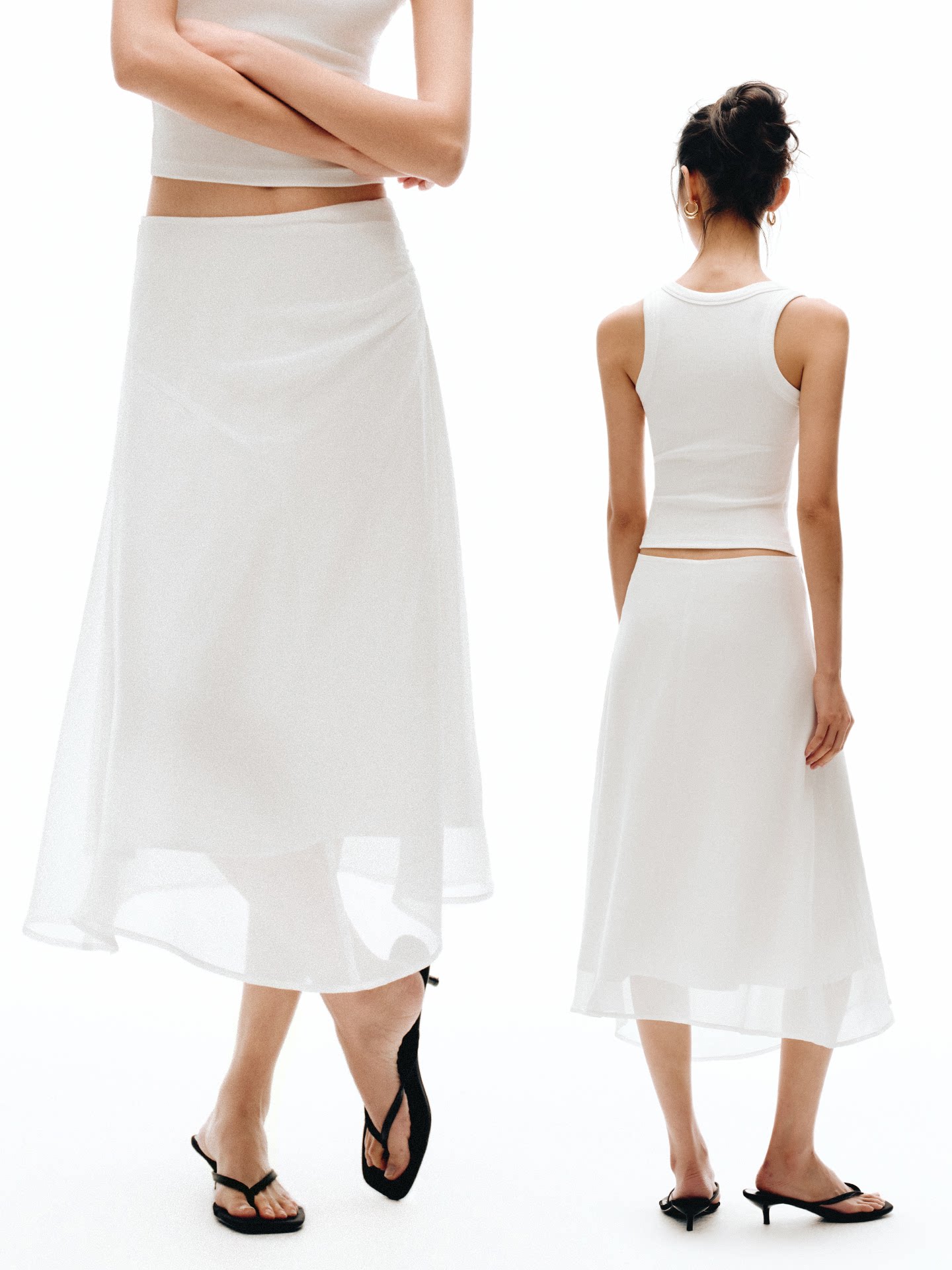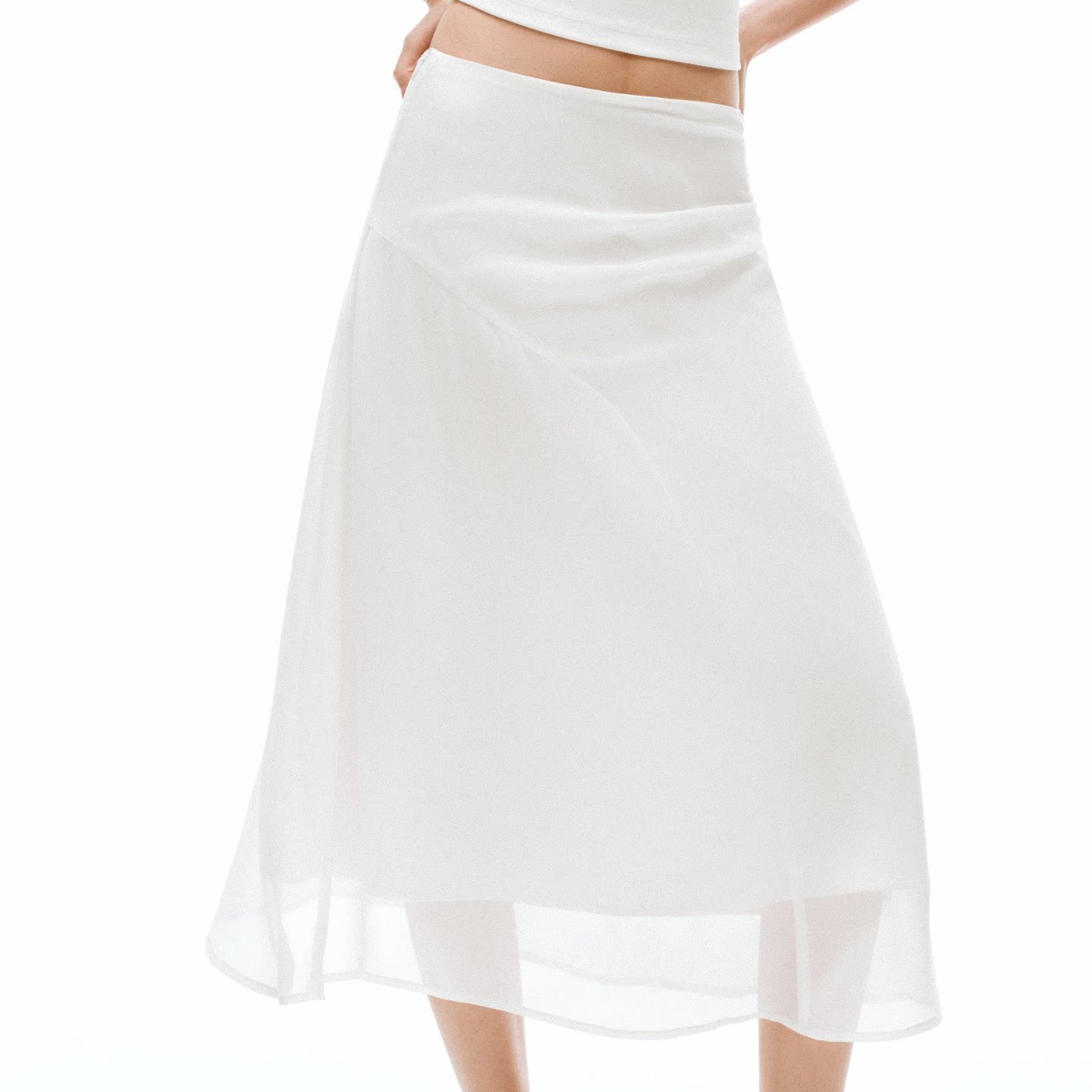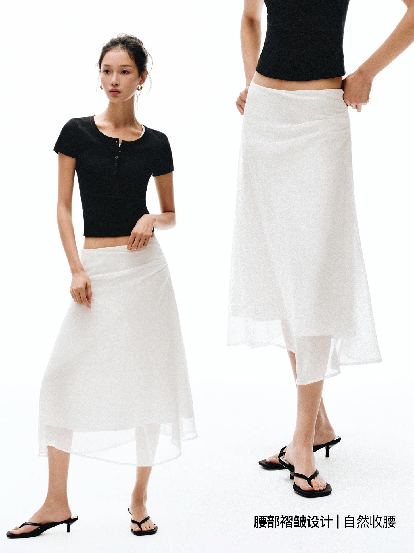 화이트 허리 주름 몸매 가꾸기 한 마디 반신 스커트 여성 새로운 얇고 가벼운 출퇴근 타이트 스커트 슬림해 보이는 롱 스커트