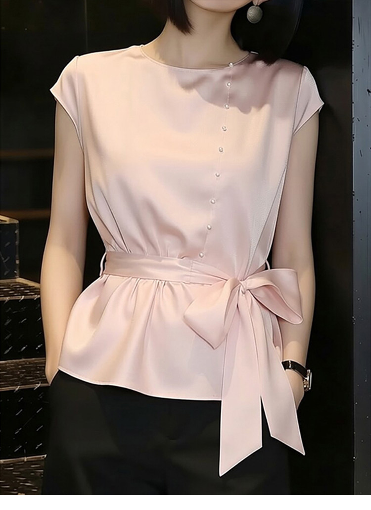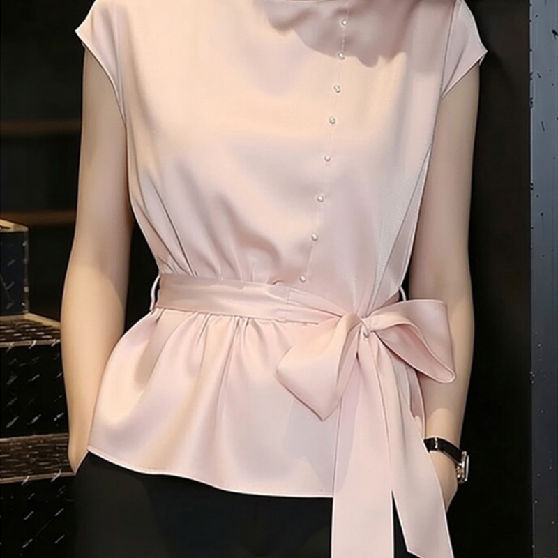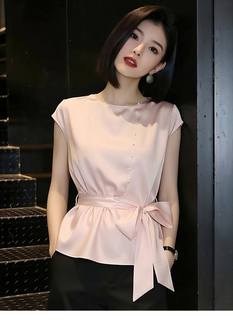 고급 허리 수축 반팔 여성 셔츠 여름 2026 년 새로운 품격 디자인 센스 맨위 다용도 슈퍼 잘 생긴 셔츠