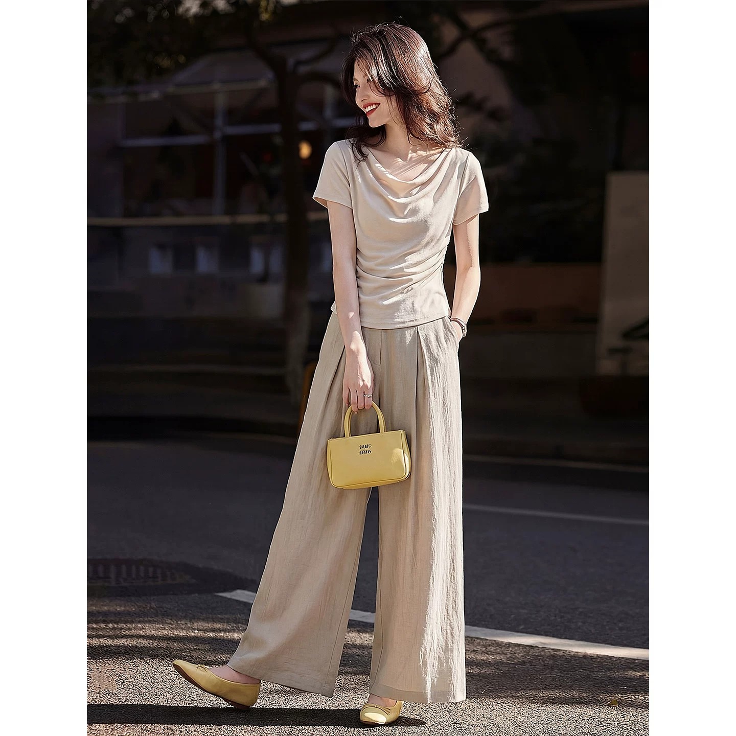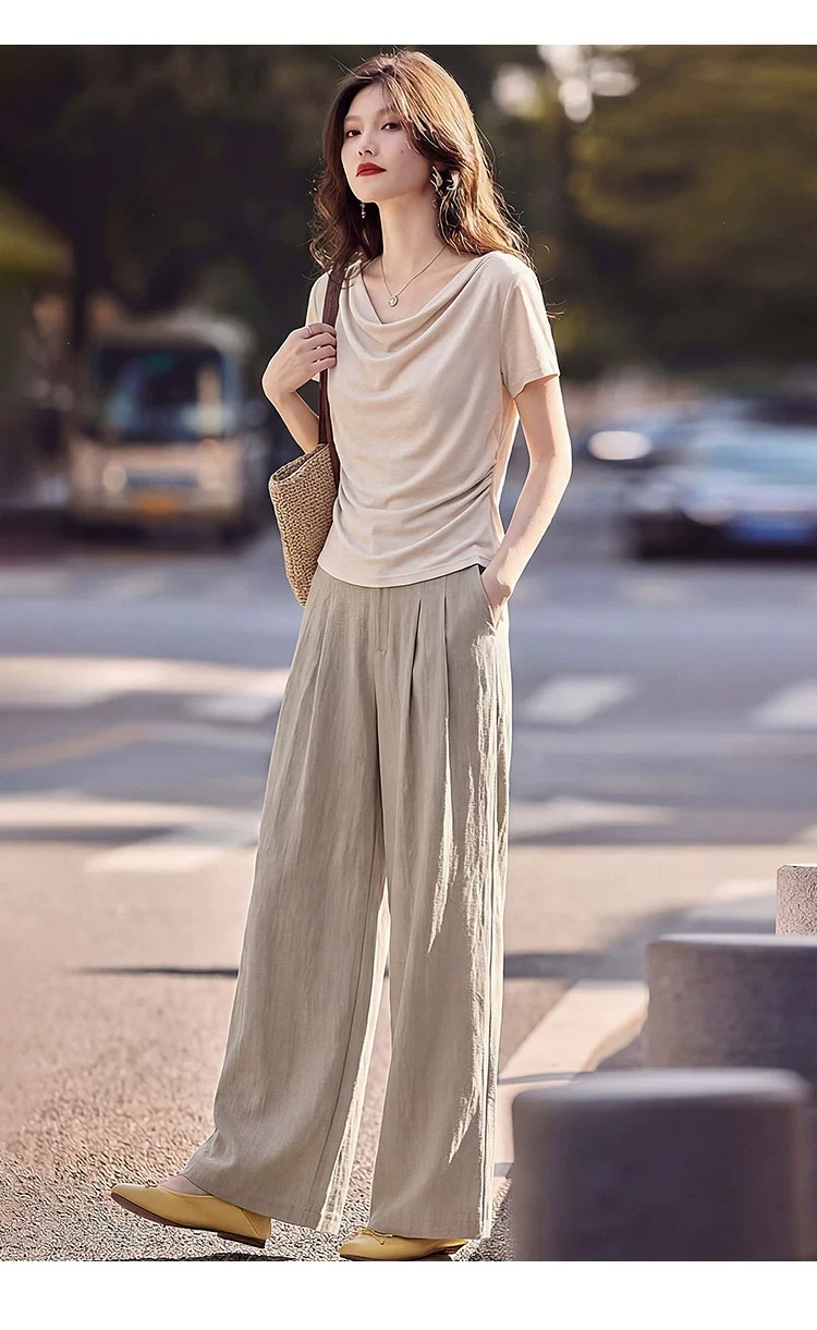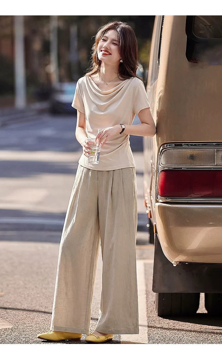 프랑스식 라이 경기 서울 반팔 티셔츠 세트 여성 2026 여름 새로운 스트레이트 넓은 다리 길이 바지 투피스 세트