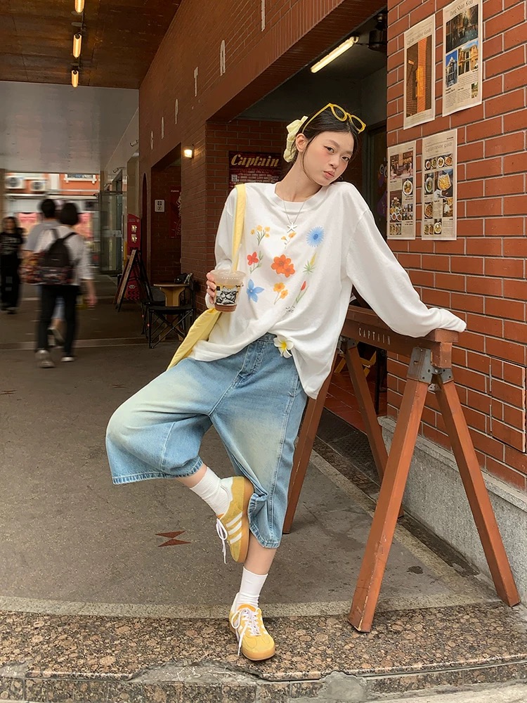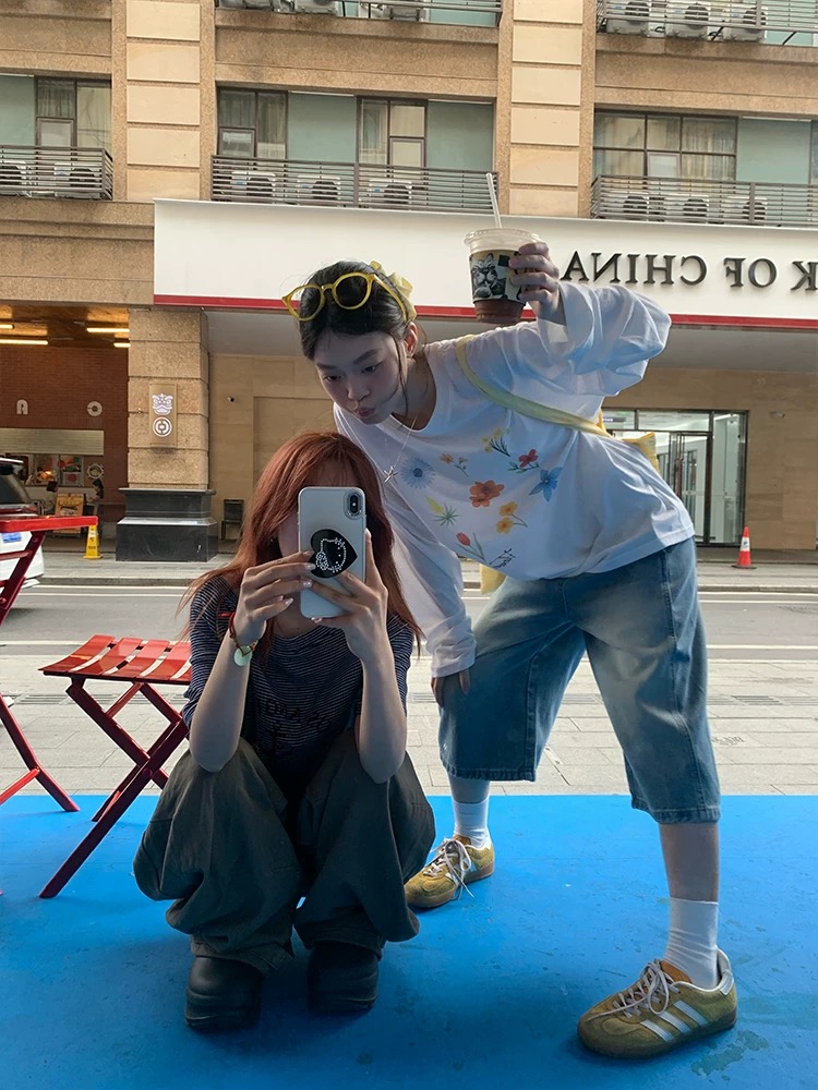 미니멀리즘 일상 캐주얼 소녀 춤추기 반팔 티셔츠