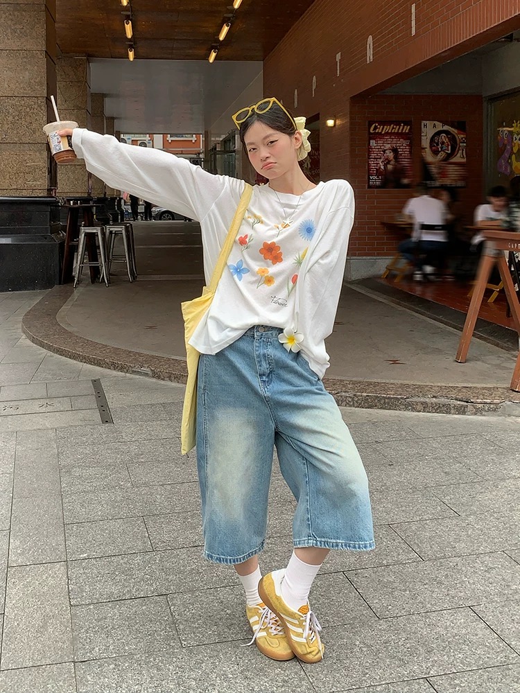 한 부서 느슨함 센스 느긋한 다용도 슬립 디자인 캐주얼 꽃무늬 루즈핏 V넥 품격 달콤함 맨위