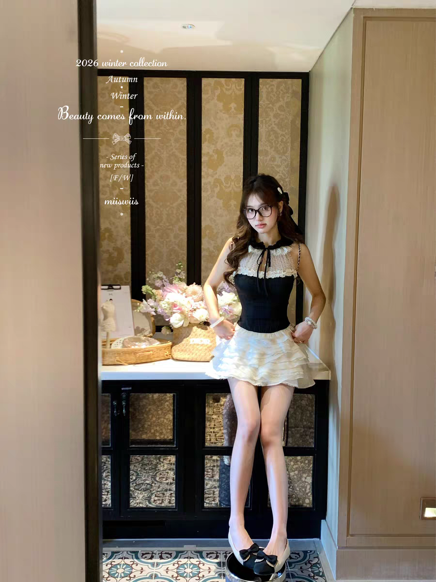 아름다움 이슬 보보 여름 달콤함 순수한 욕망 miu 부서 V넥 민소매 세트 j26bh177