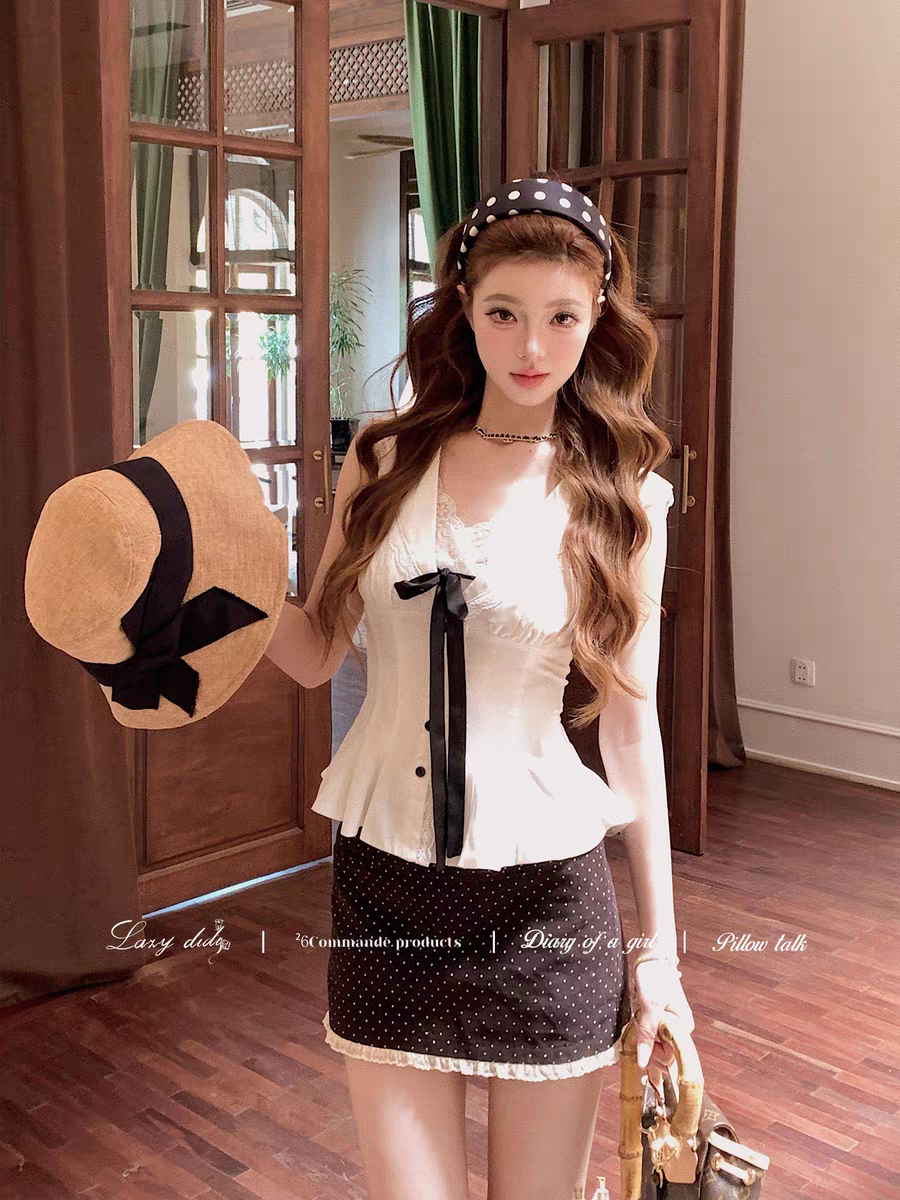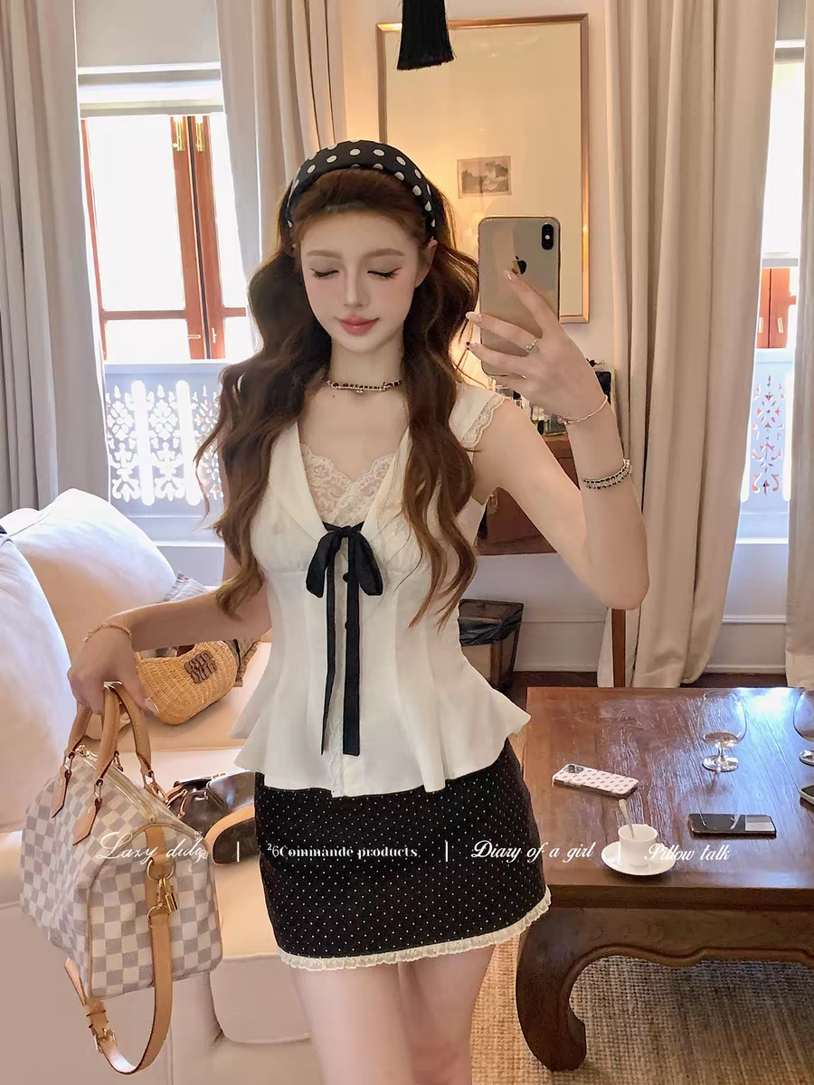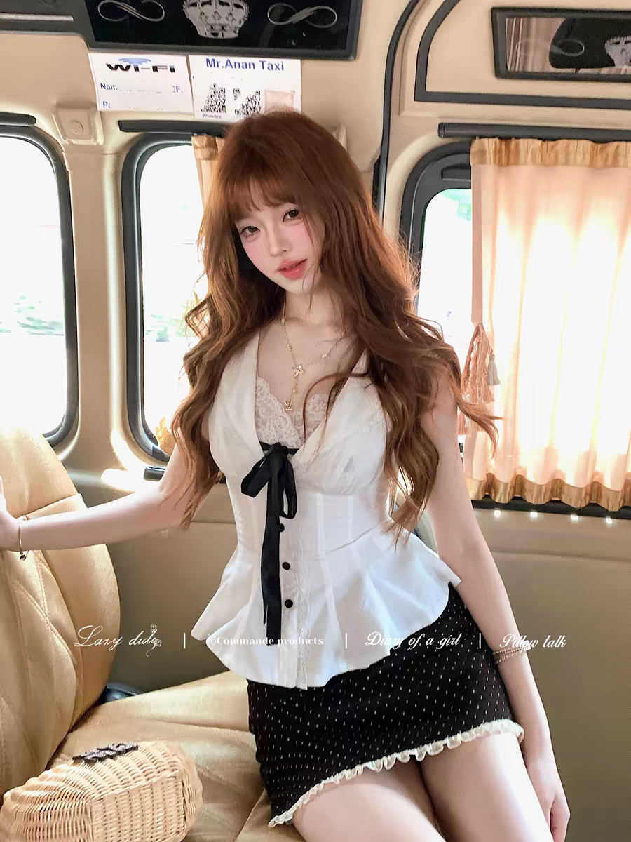 정가 있음 보호 부드러운 바람 무거운 작업 레이스 자수 경기 리본 작은 셔츠 여성 프랑스식 고급 센스 달콤함 조끼