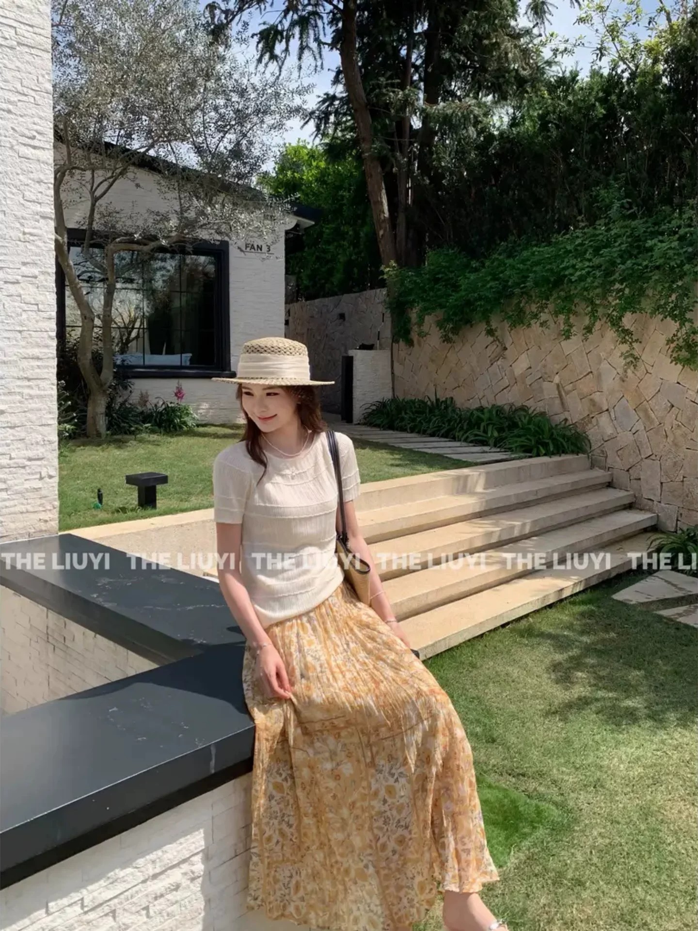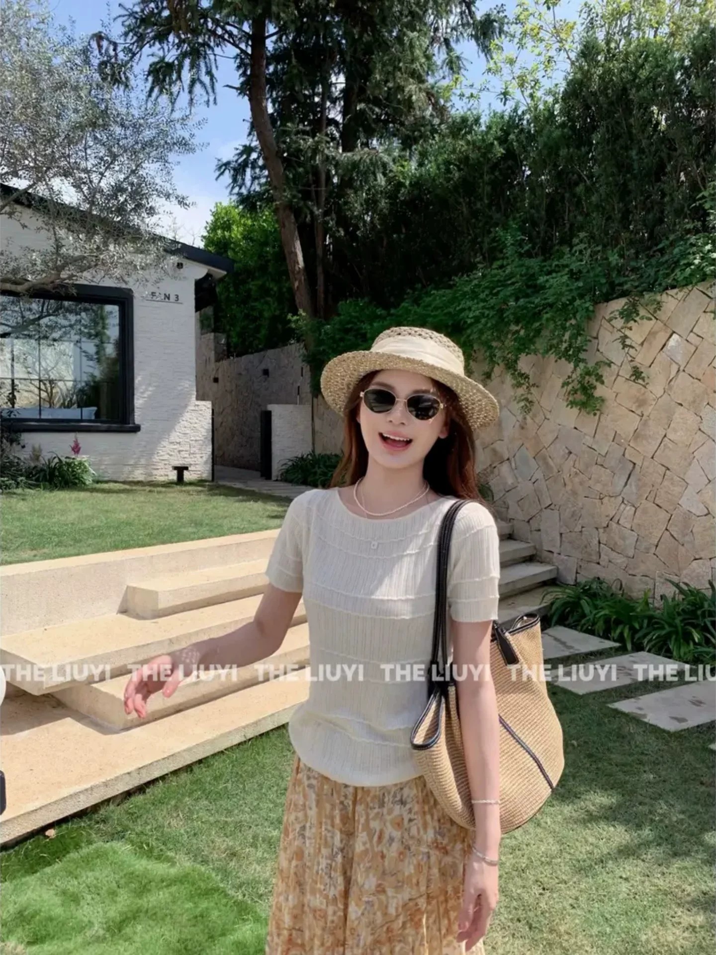 liuyi 맑은 하늘 여름 얇은 스타일 차가운 센스 니트 슬림해 보이는 반팔 맨위