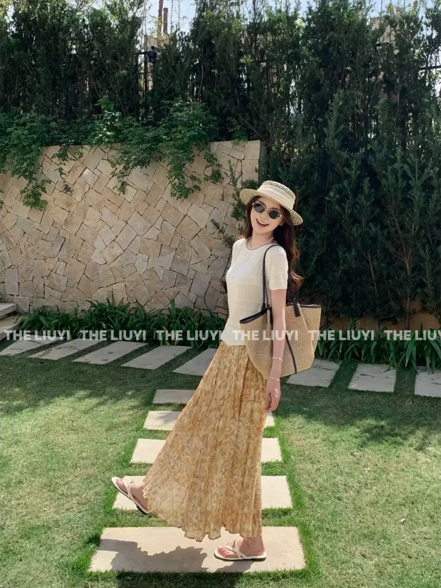 고급 센스 살구 색상 홀로우 아웃 자외선 차단 오픈 가디건 여성 코트 여름 경기 슬립 외부 가져 가라. 블라우스 맨위 투피스 세트