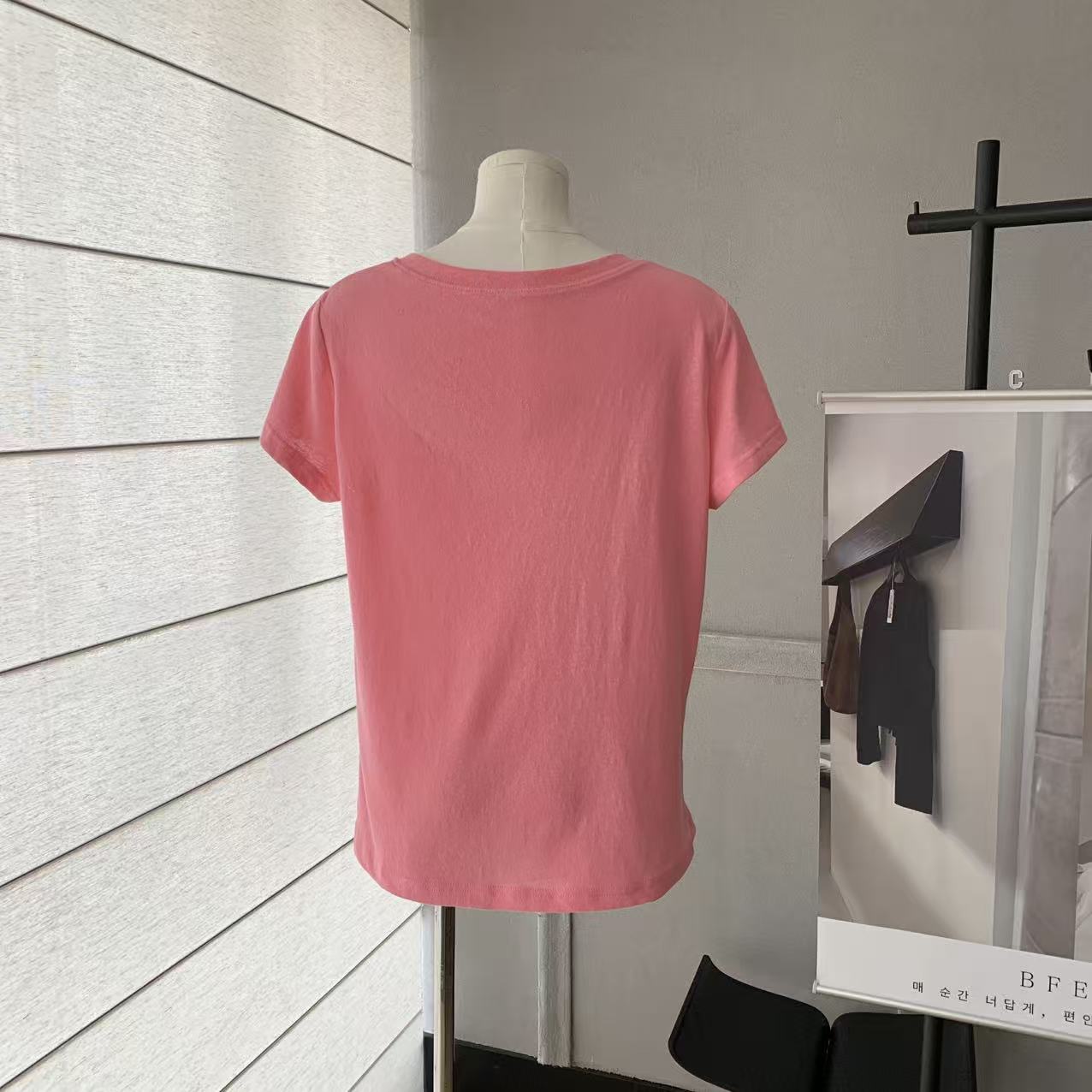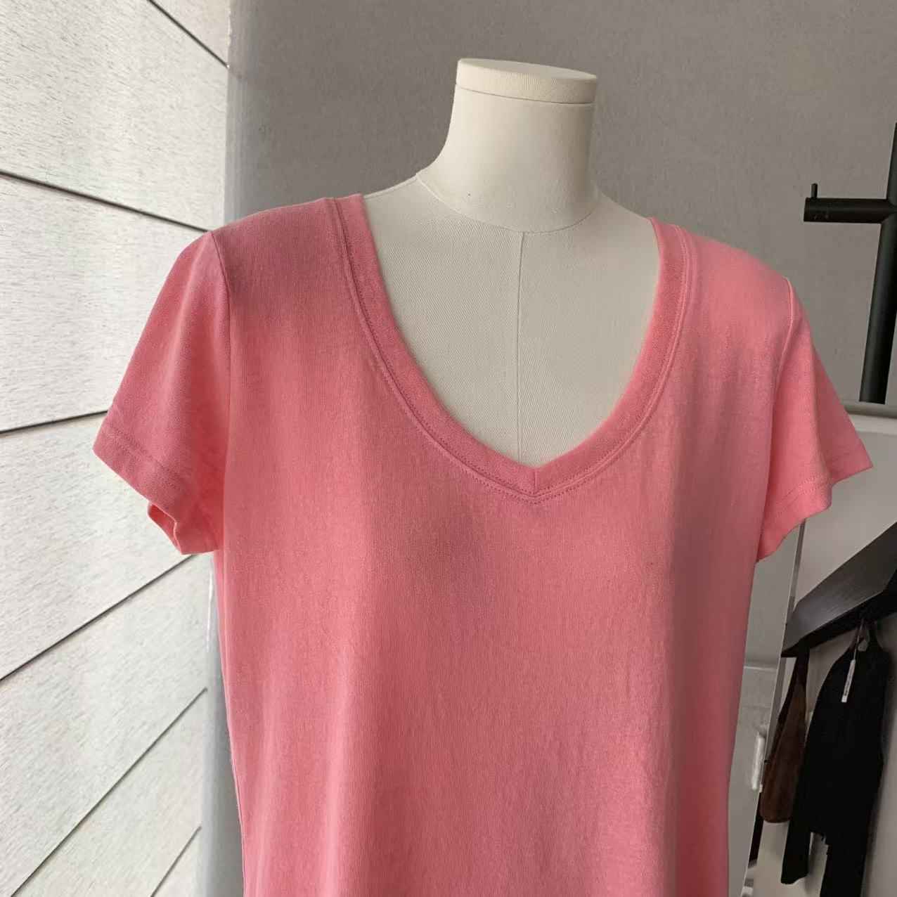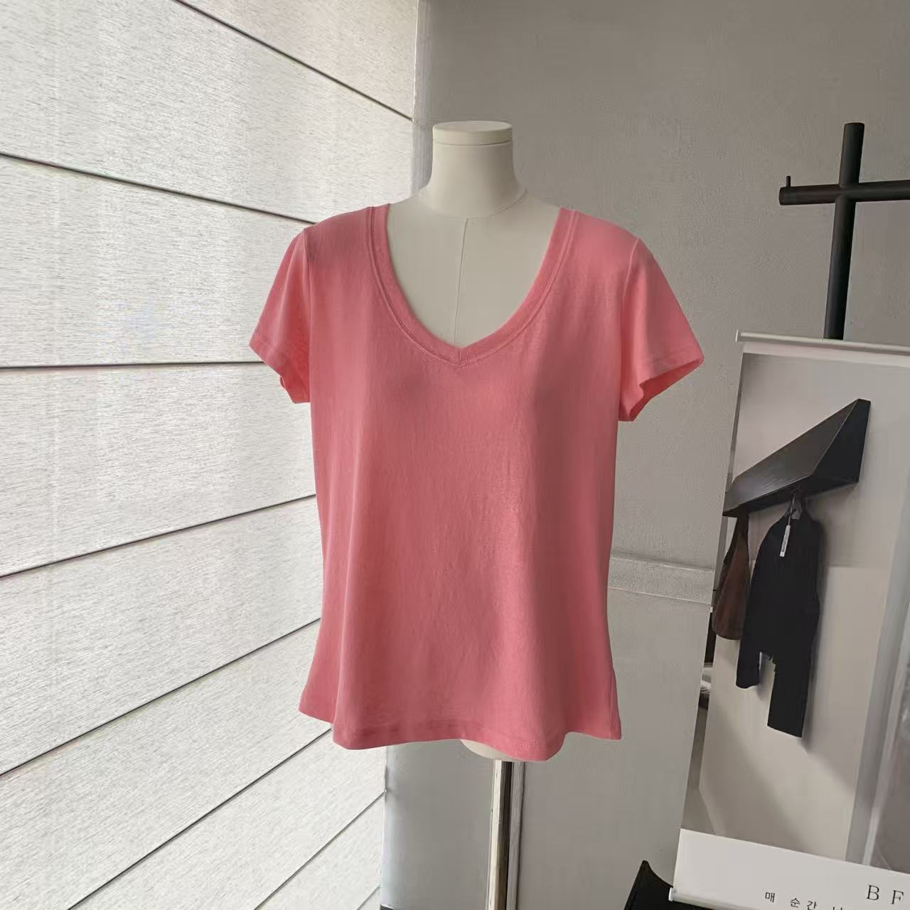 bigking 다이 킨 홈 무료 전체 점수 로즈 레드 반팔 티셔츠 여성 V넥 자외선 차단 블라우스 루즈핏 맨위