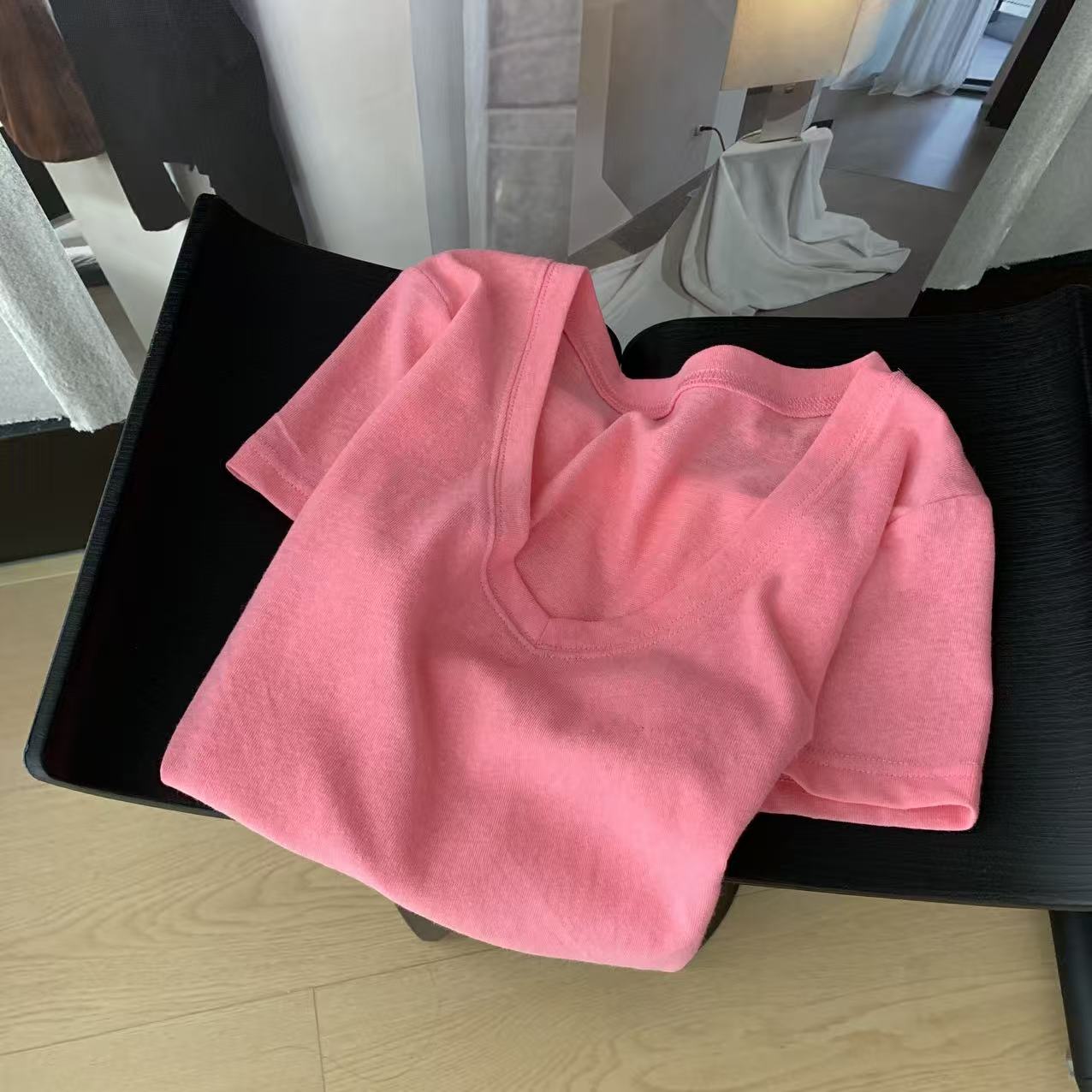 bigking 다이 킨 홈 얕은 욕망 마이크로 대 u 칼라 레이스 측면 반팔 티셔츠 여성 몸매 가꾸기 순수한 욕망 맨위
