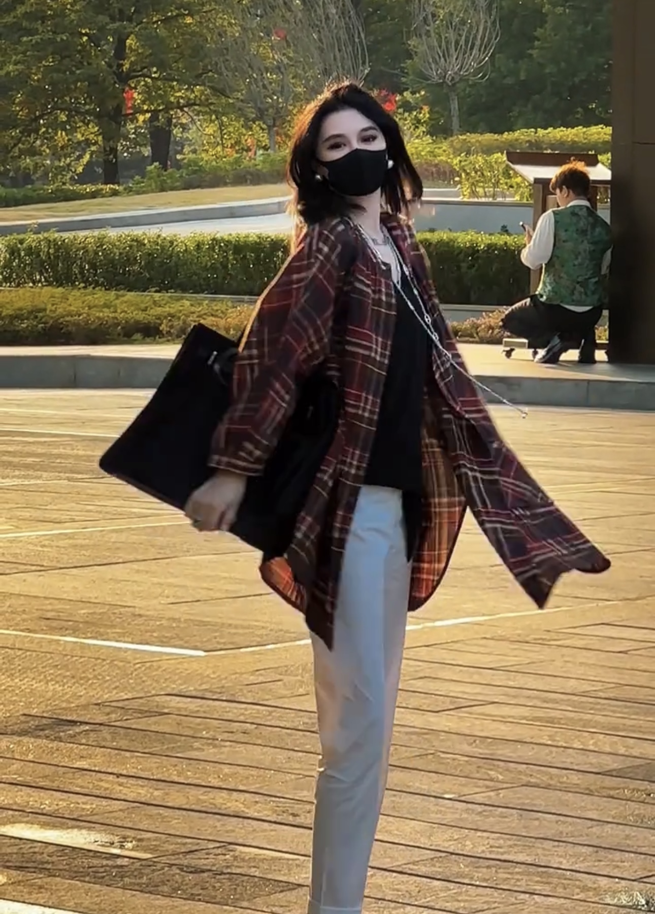 있음 선적 격자 무늬 셔츠 쉬폰 블라우스 맨위