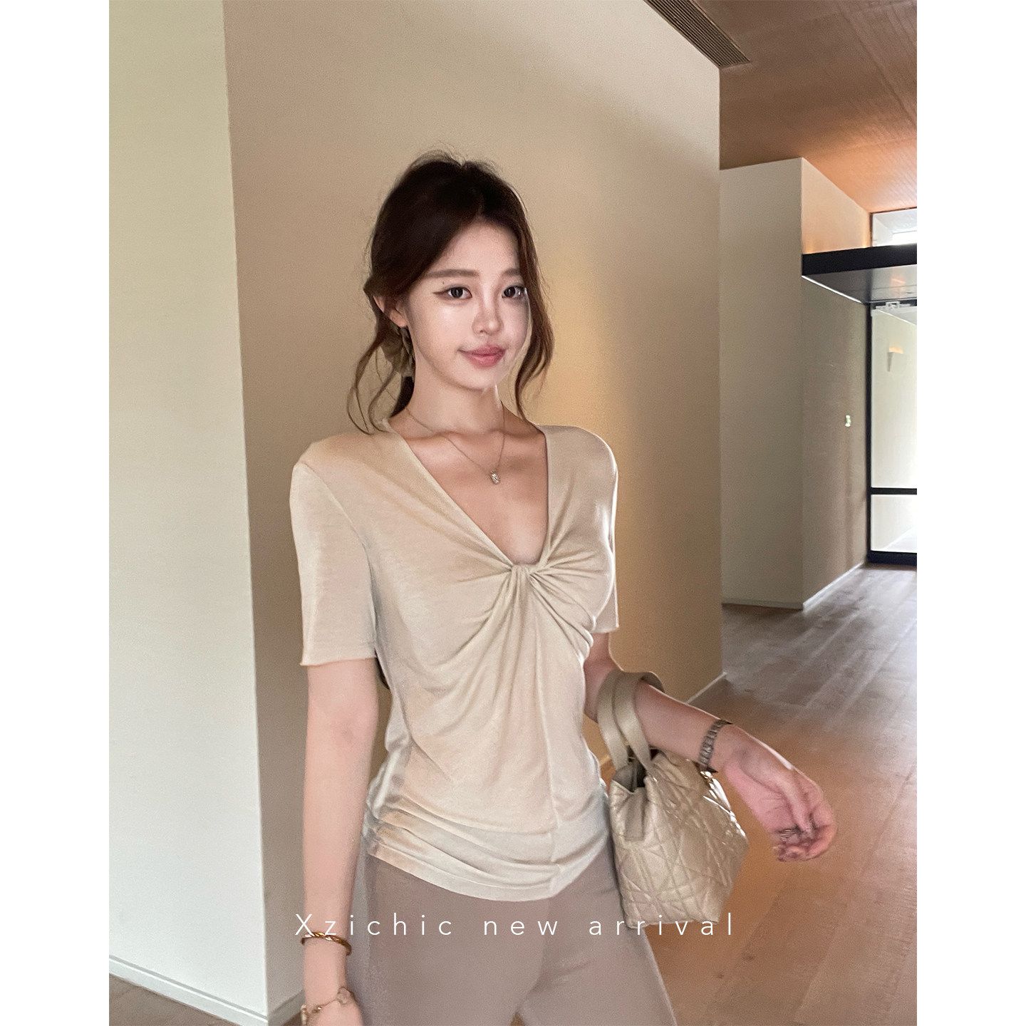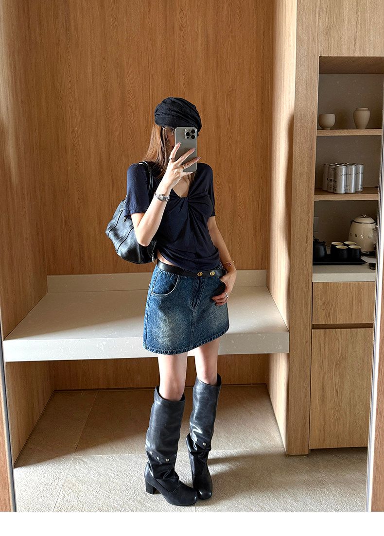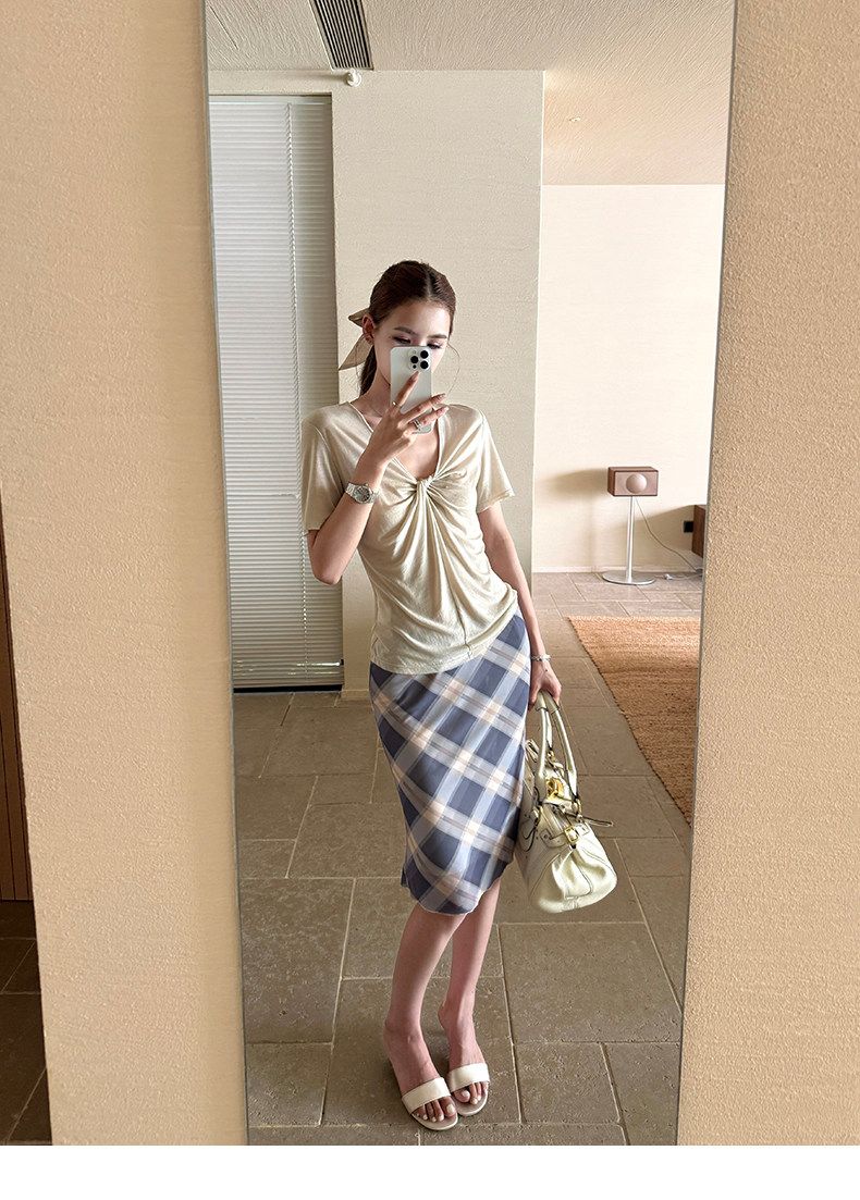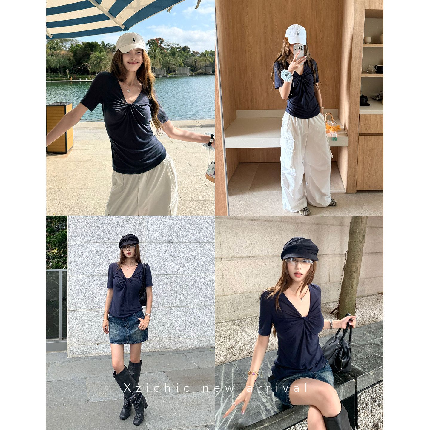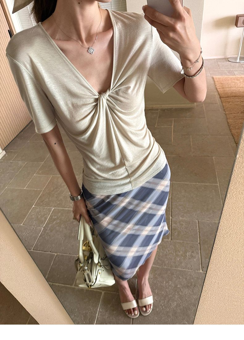 xzichic 트위스트 t 반팔 티셔츠 여성 십자가 디자인 센스 한 부서 품격 맨위