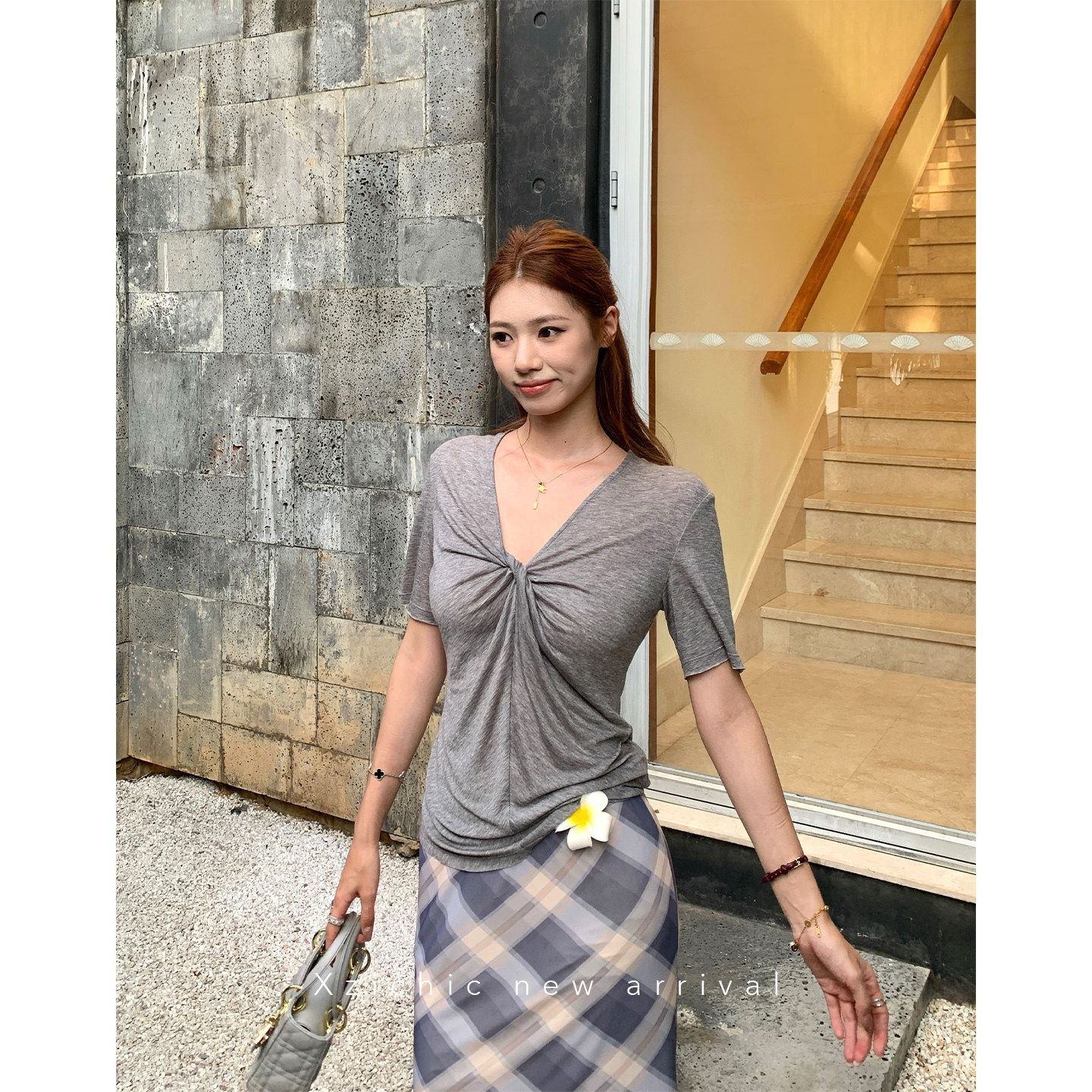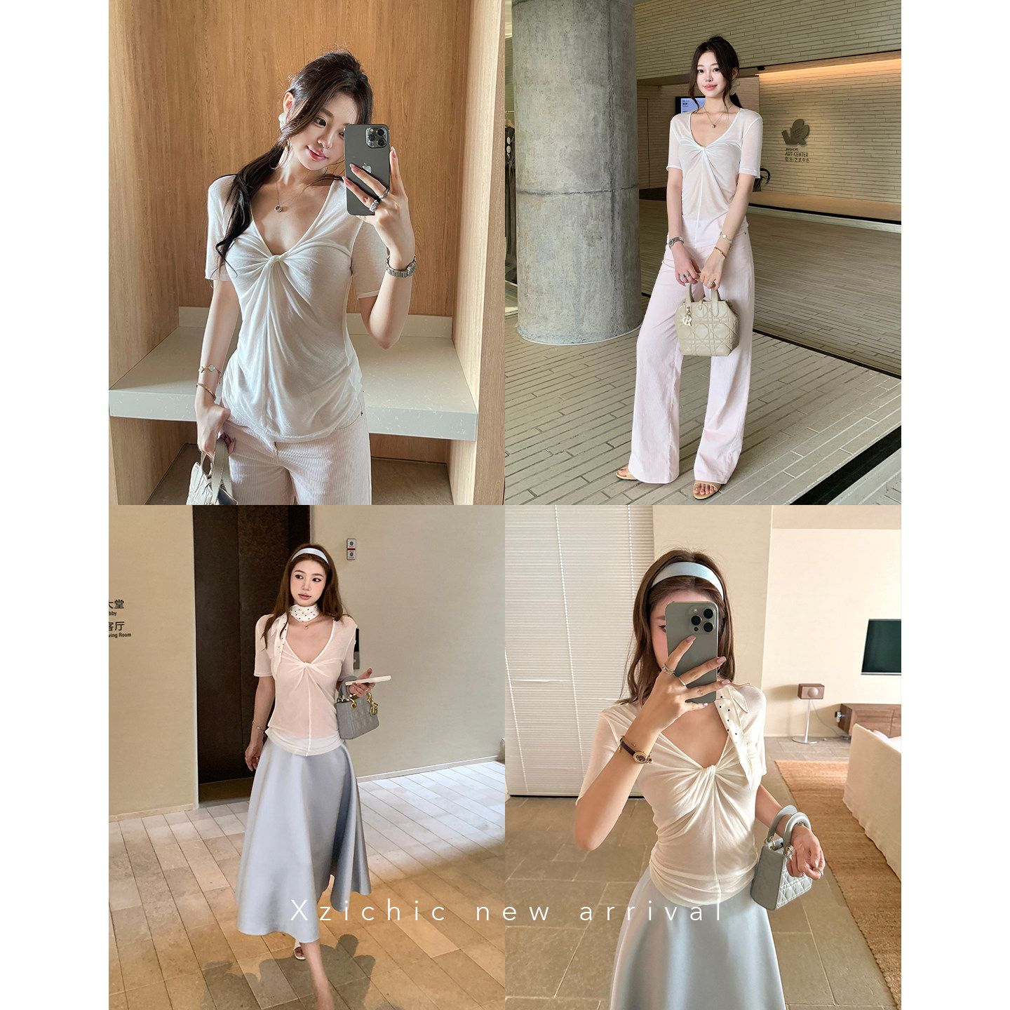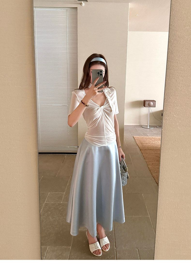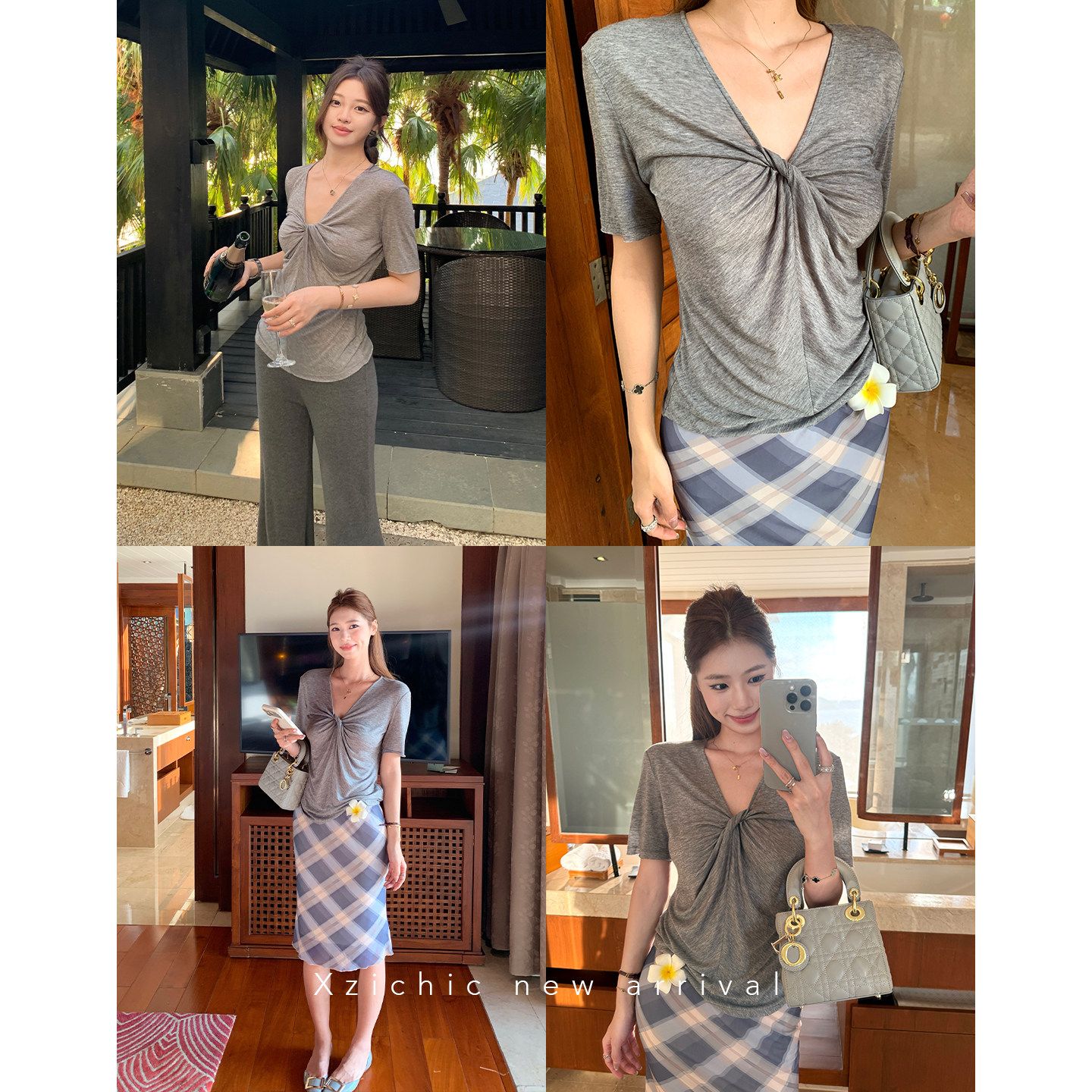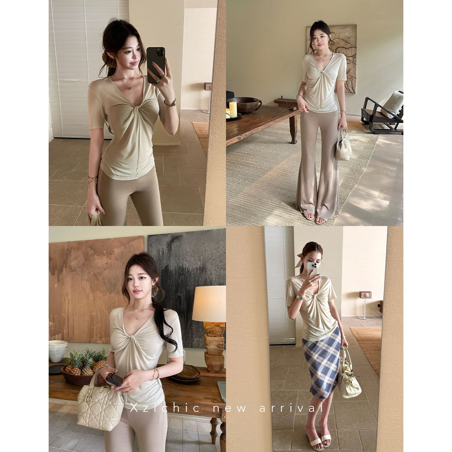 xzichic 트위스트 t 반팔 티셔츠 여성 십자가 디자인 센스 한 부서 품격 맨위