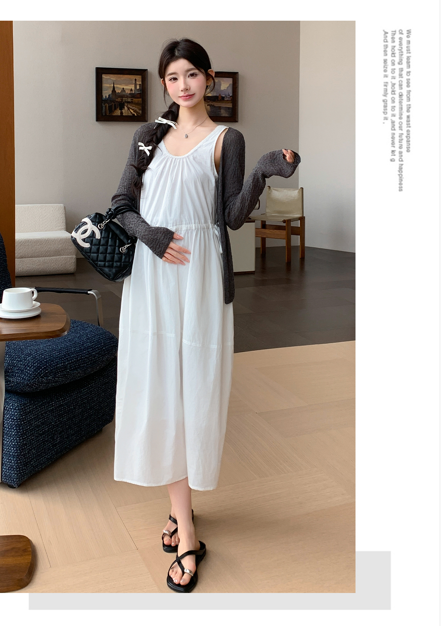 실사 임산부 민소매 조끼 원피스 작은 키 루즈핏 슬림해 보이는 품격 아름다운 캐주얼 휴가 치마