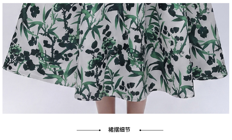 출퇴근 바람 레트로 프린트 스탠드 칼라 싱글 줄 버튼 긴팔 치마 허리 수축 큰 진자 드레스 벨트 포함