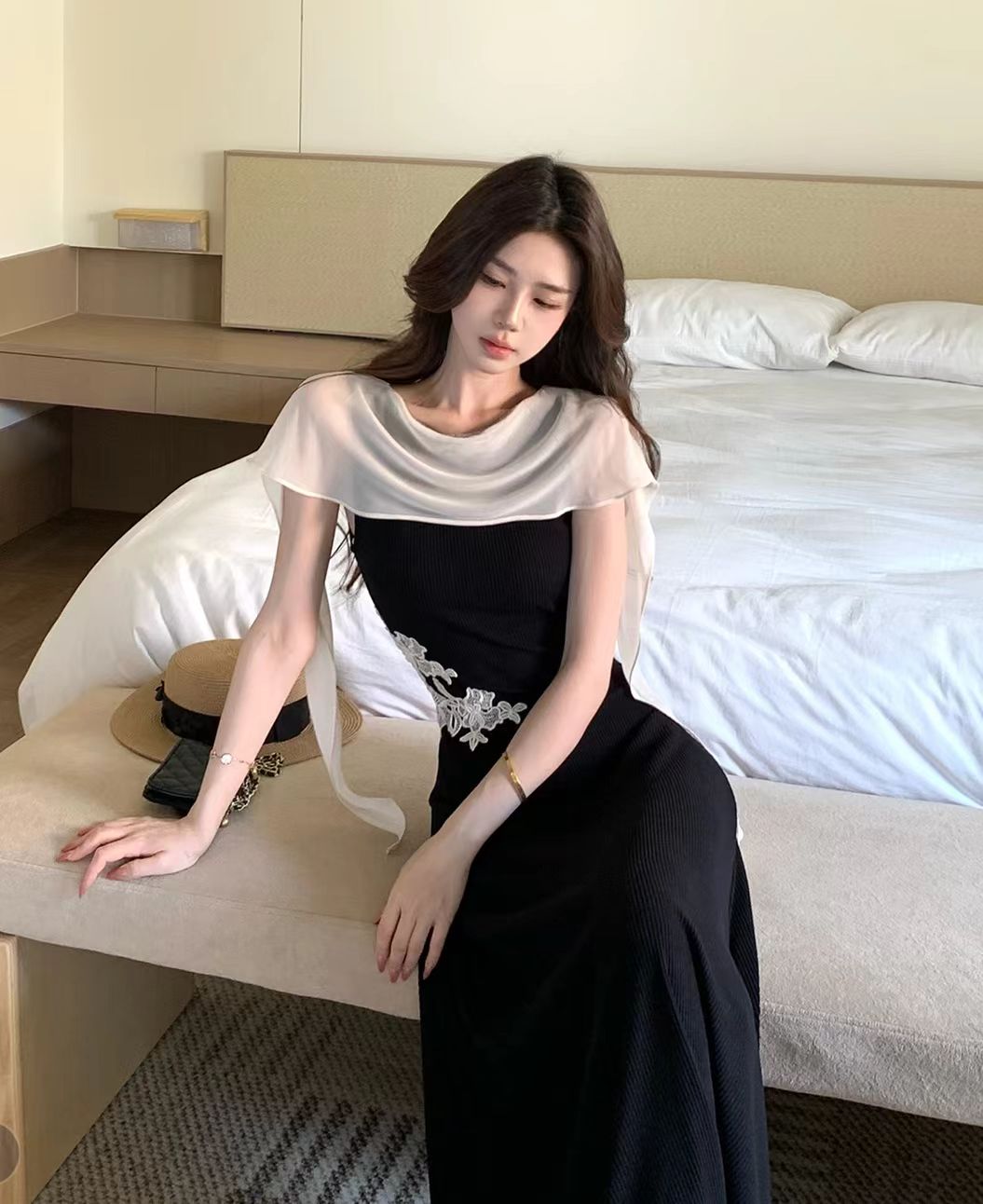 바다 측면 포함 달 부드러운 분위기 센스 레이스 드레스 해변가 야경 휴가 품격 드레스