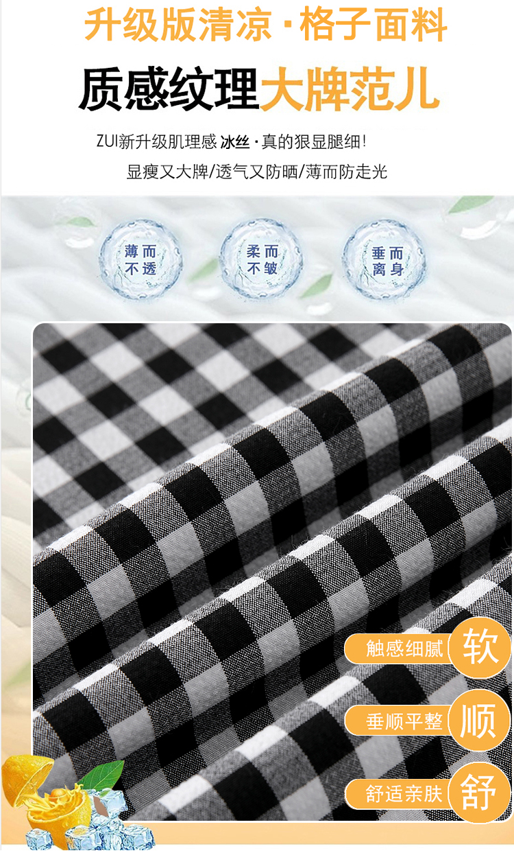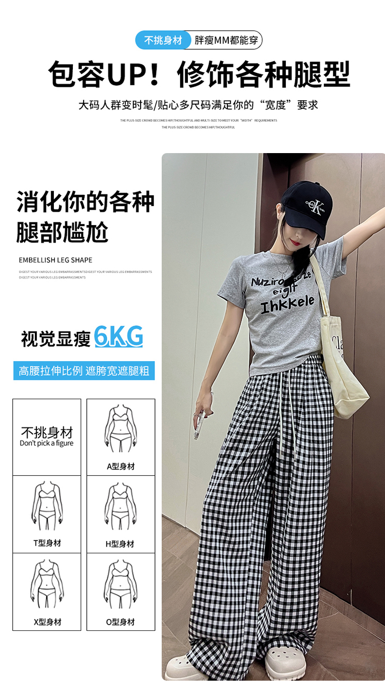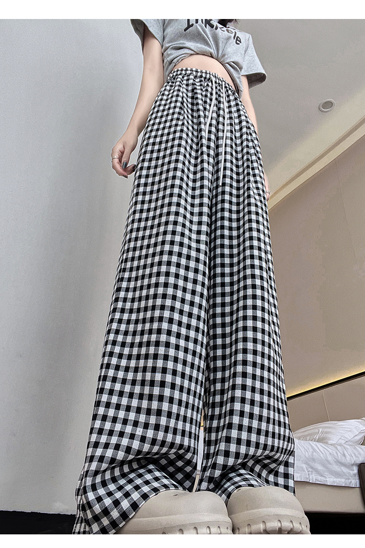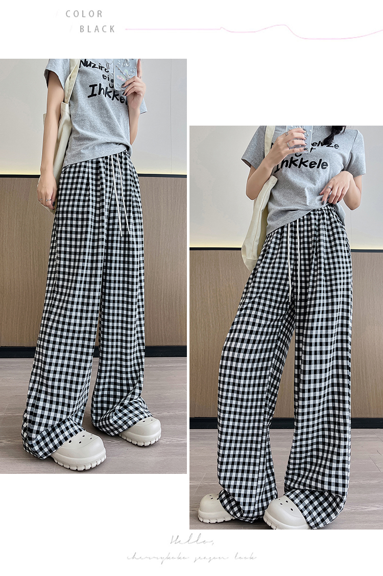 흑인과 백인 체크무늬 와이드 레깅스 바지 26 여름 얇은 스타일 캐주얼 작은 키 레트로 체크무늬 스트레이트 길이 연장 바닥 청소 바지