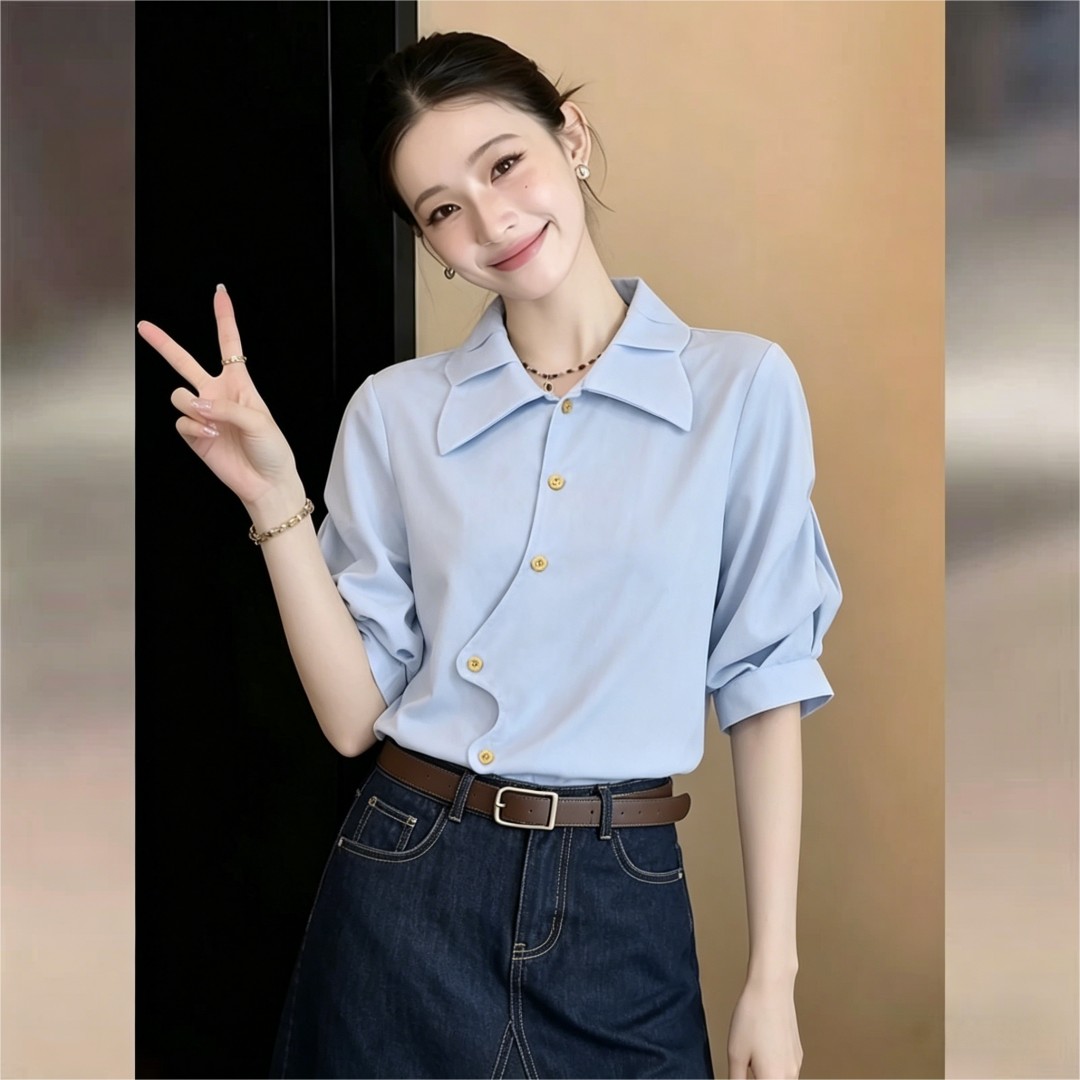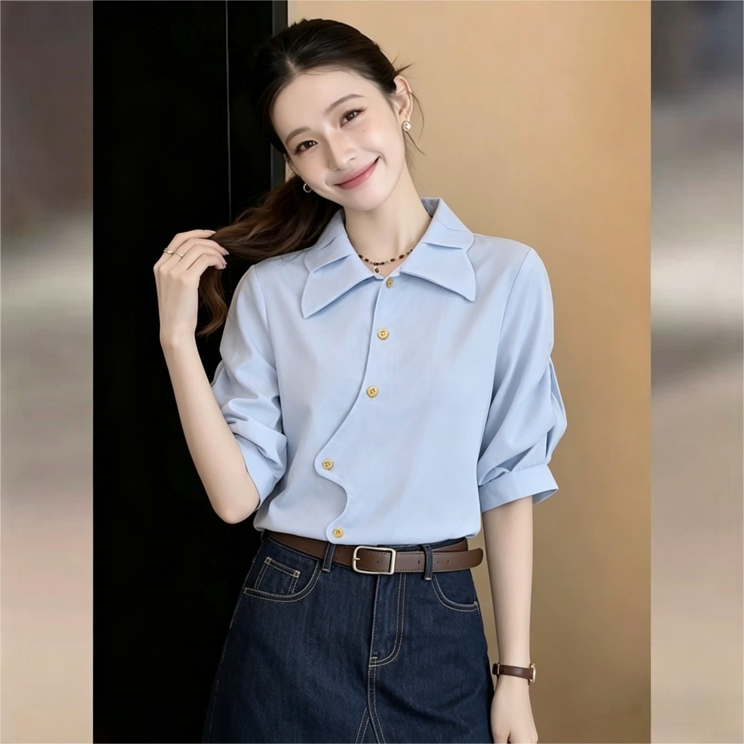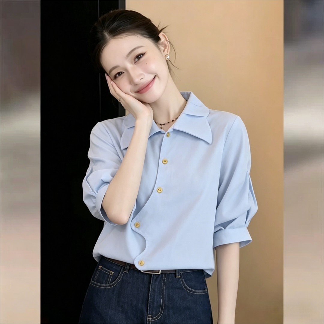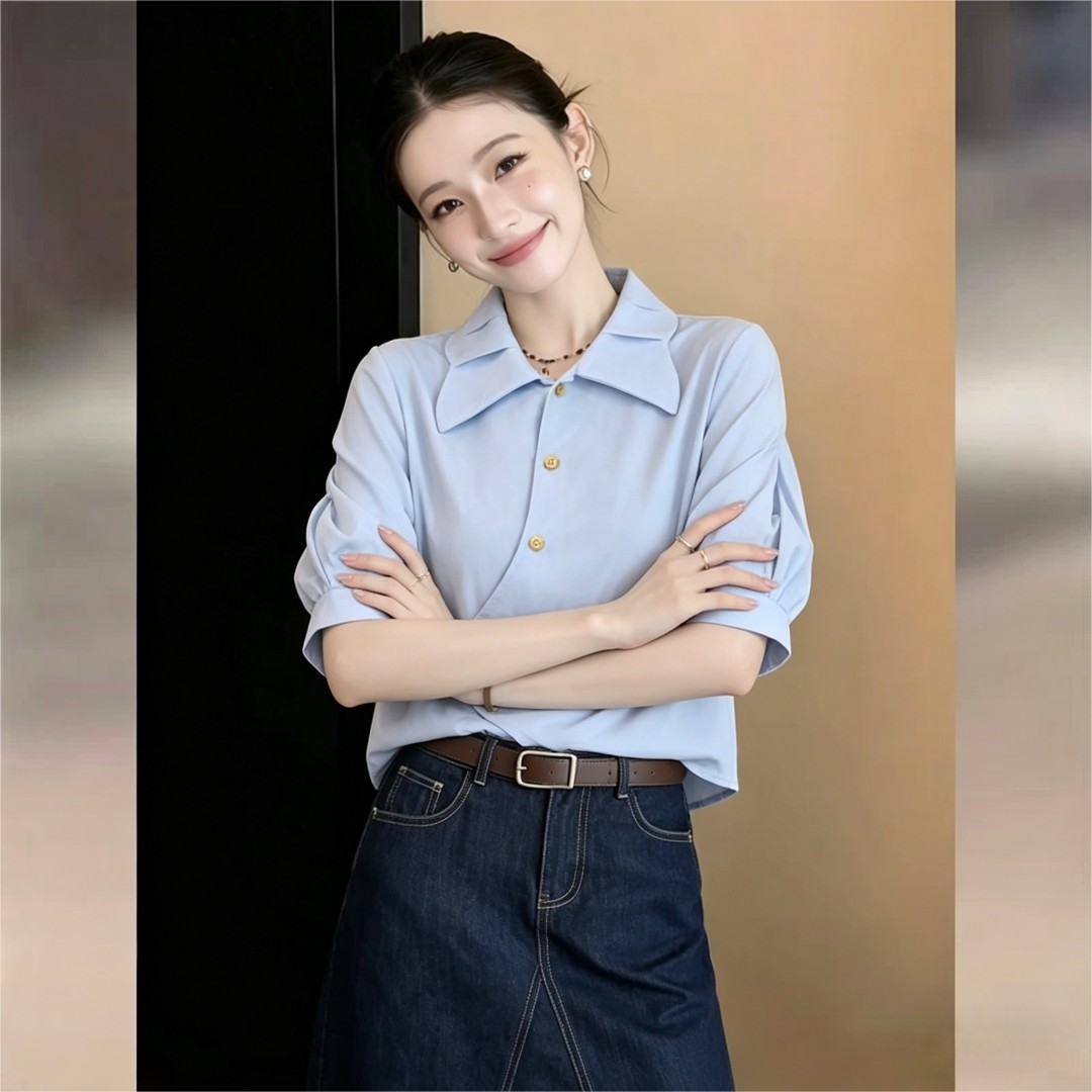 실사 프랑스식 레트로 패션 품격 작은 대중 반팔 여성 셔츠 2026 여름 출퇴근 다용도 맨위 여성
