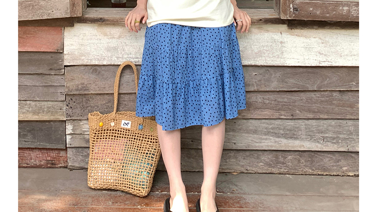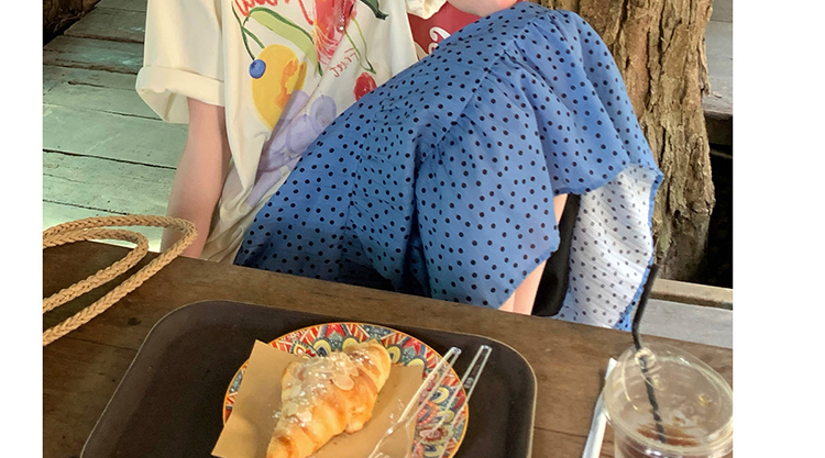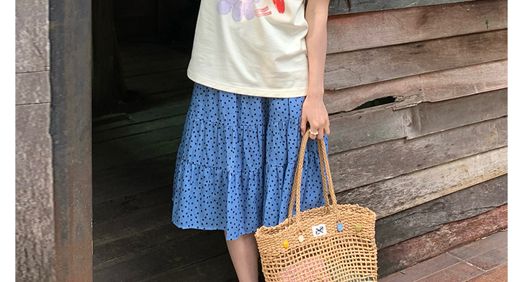 한국 스타일 루즈핏 여름 다채로운 티셔츠 파란색 도트 무늬 반신 스커트 임신 엄마 편안함 세트