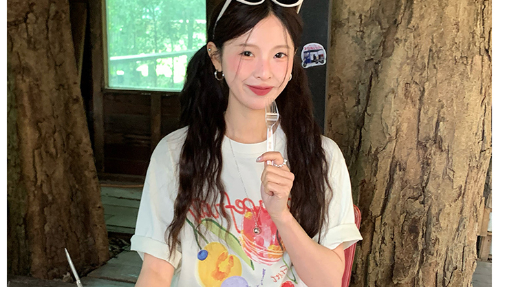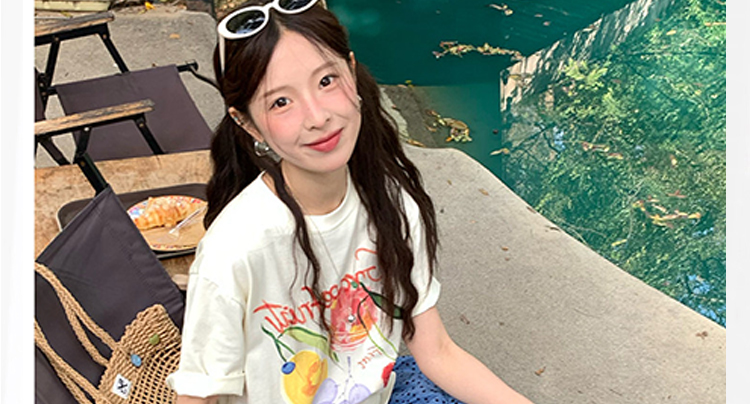 실사 여름 한국 스타일 루즈핏 무거운 작업 수건 자수 연령 감소 티셔츠 운동 반신 스커트 트렌디 엄마 세트