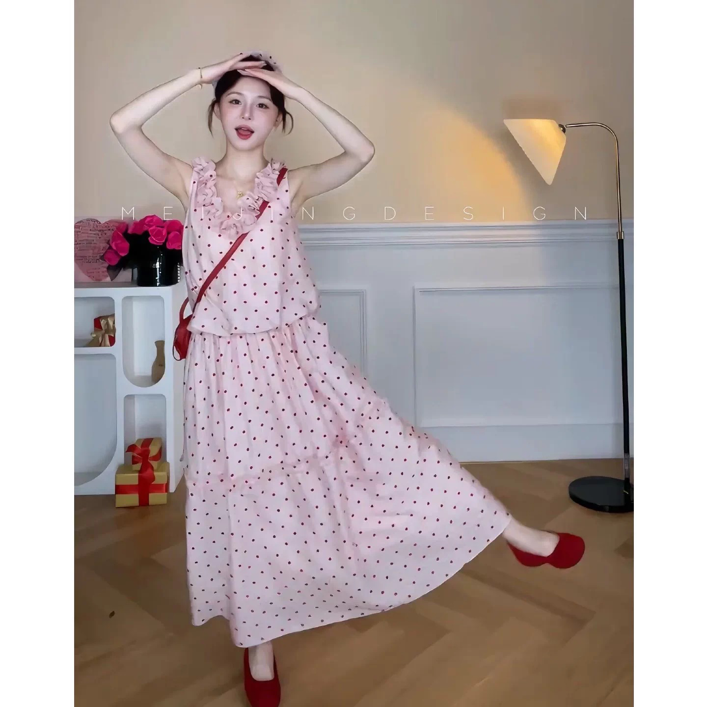 4 30 pm20 신제품 켜기 새로운 하나 달콤한 복숭아 yikett 도트 무늬 드레스