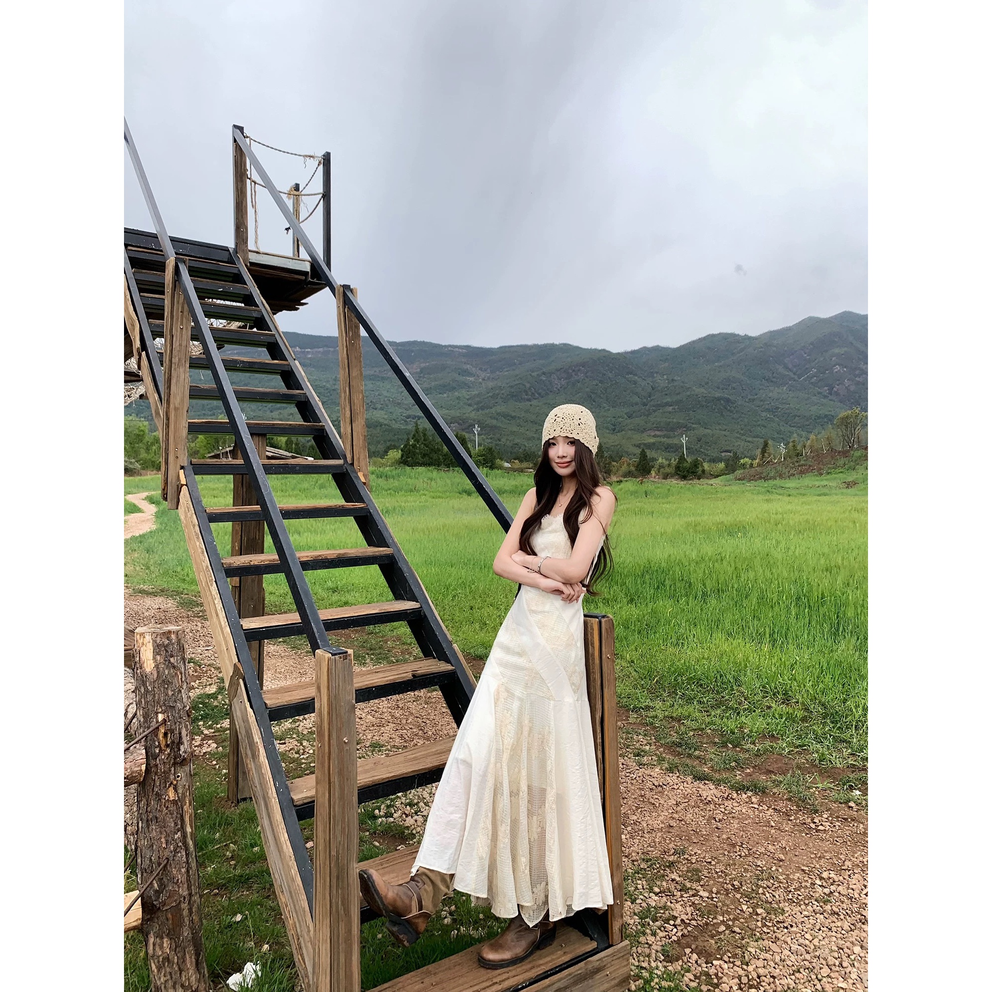 V넥 프랑스식 민소매 여성 드레스 여름 화이트 몸매 가꾸기 한 마디 롱 스커트 디자인 센스 작은 대중 치마