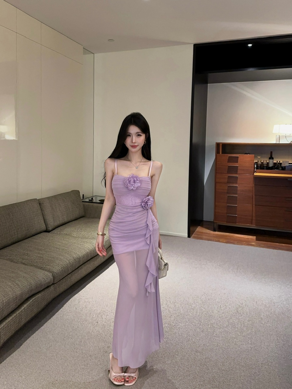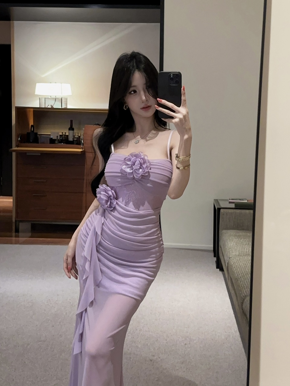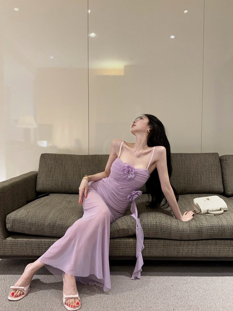 실사 품격 명문 여성 디자인 센스 꽃 패치워크 망사 섹시함 달콤함 슬립 드레스