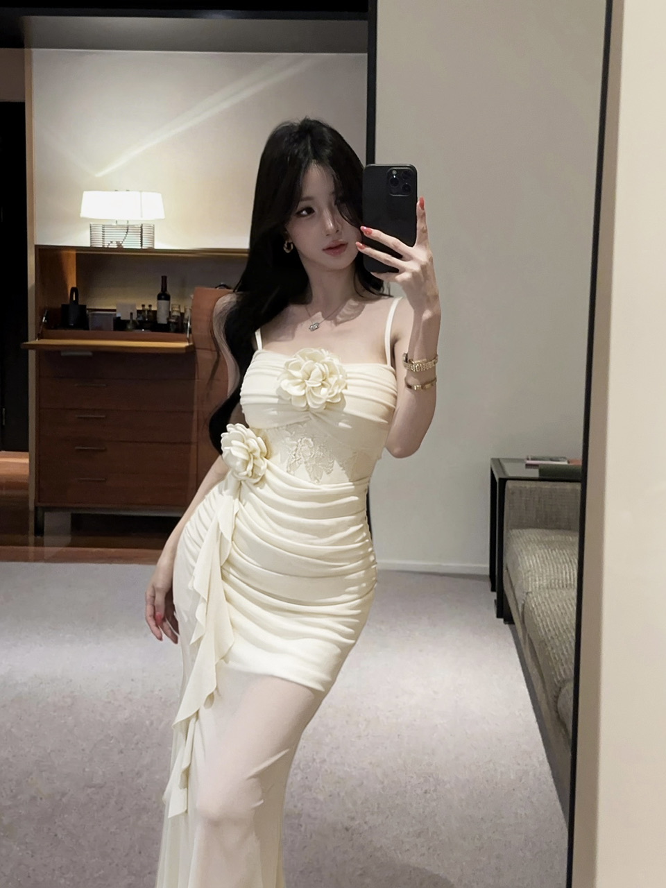 실사 순수한 욕망 레이스 고급 분위기 센스 허리 수축 슬립 예복 드레스