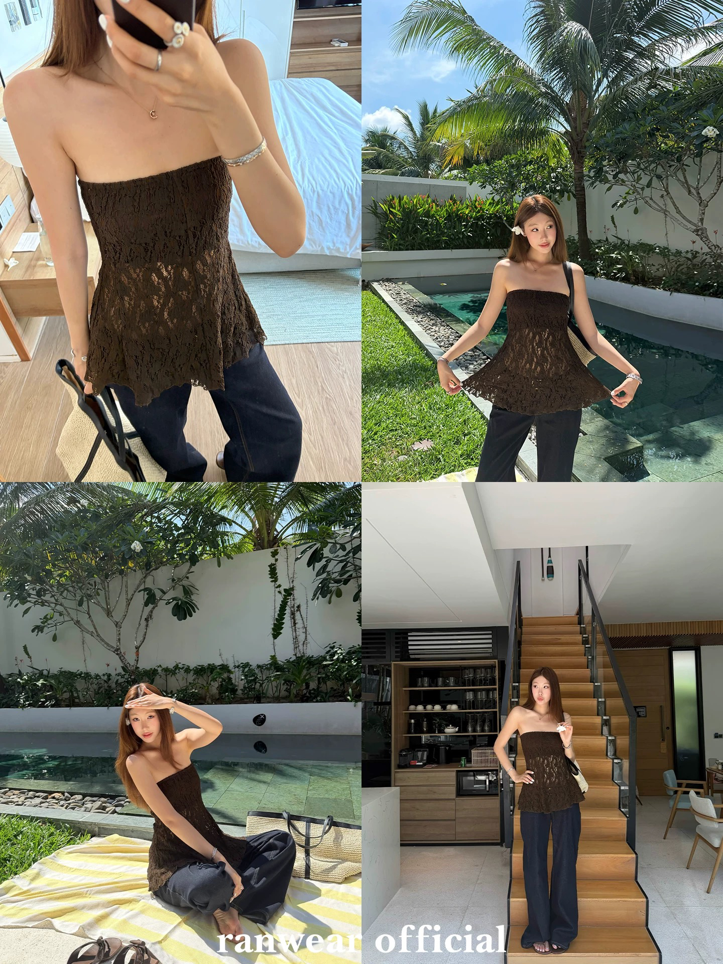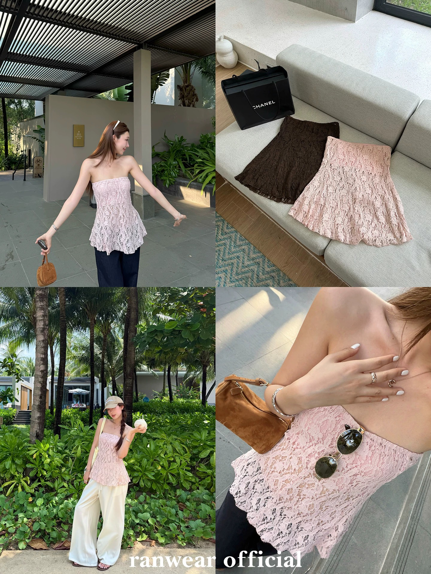 ranwear 황혼 특히 플러스 이익 낭만주의 순수한 욕망 질감 센스 마이크로 ~을 통해 레이스 루즈핏 한 마디 슬림해 보이는 튜브탑 세트