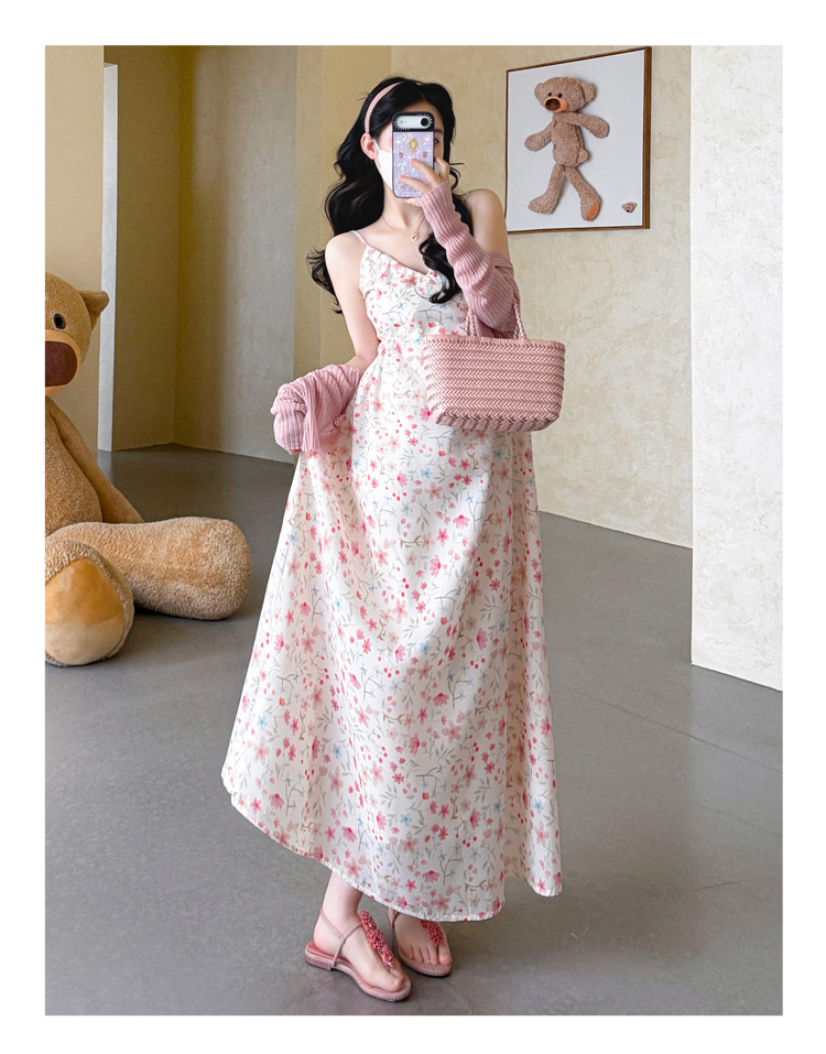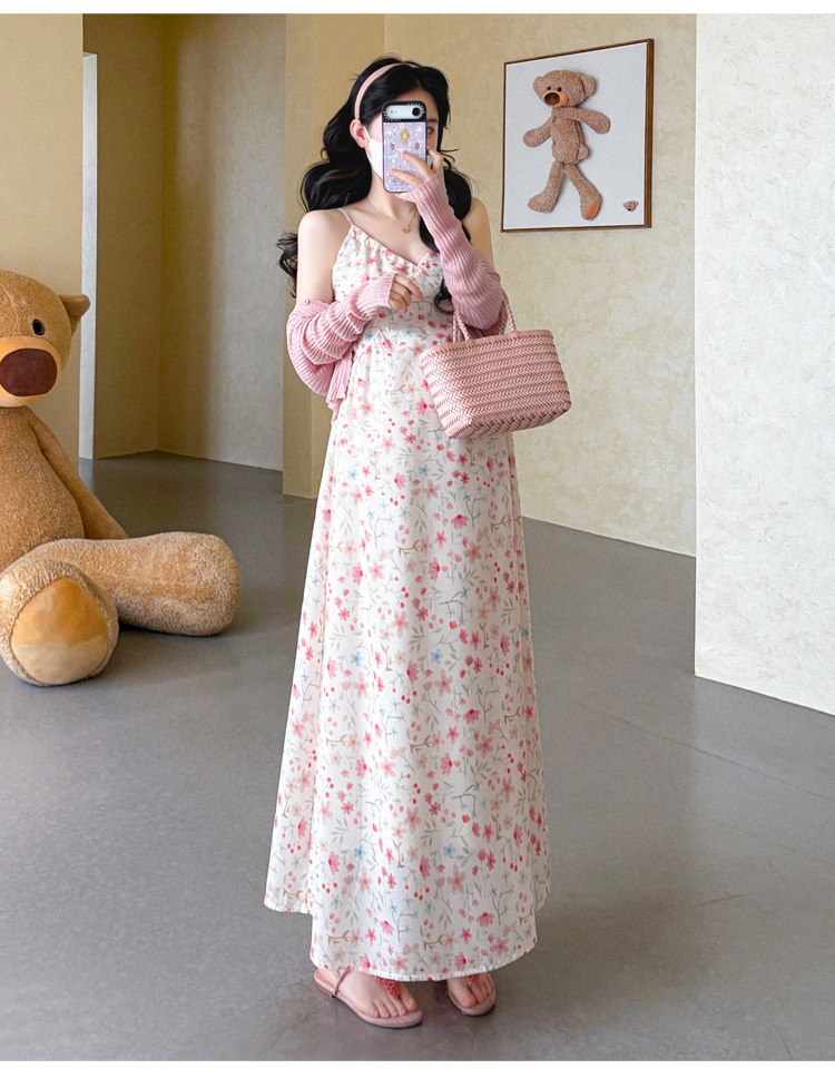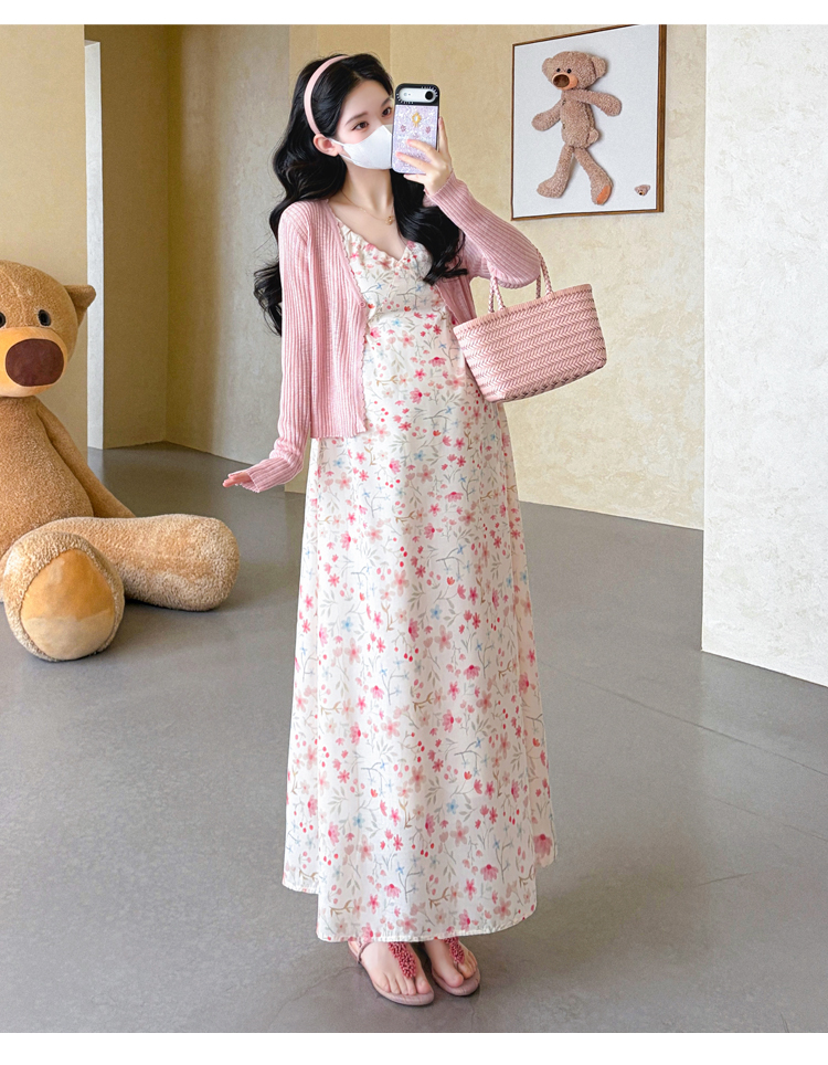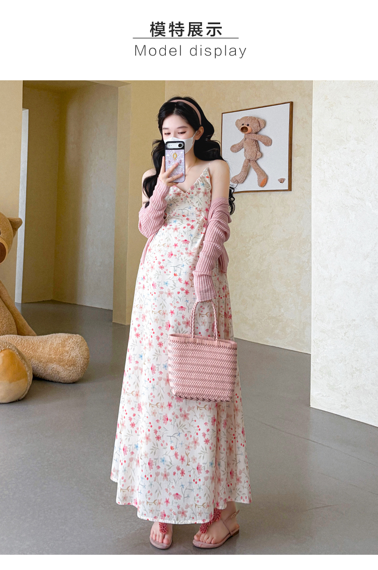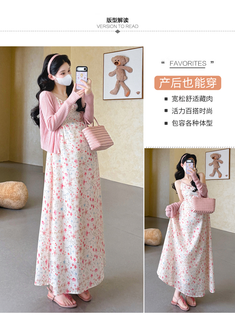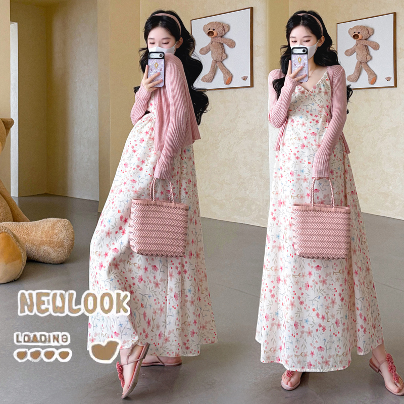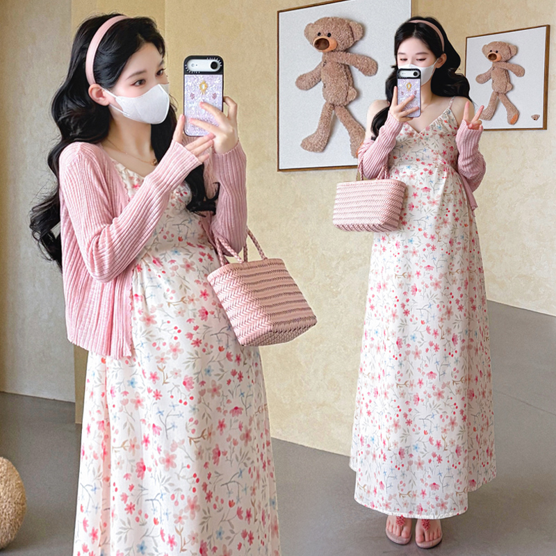 실사 인터넷 유명인 출산 착용 빅 사이즈 임산부 조끼 스커트 작은 열림 셔츠 투피스 세트 작은 꽃무늬 임산부 세트