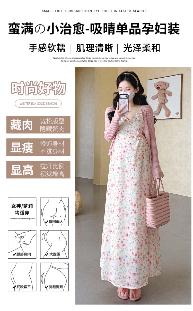 실사 새로운 인터넷 유명인 출산 착용 빅 사이즈 임산부 투피스 세트 아세트산 슬립 드레스 자카드 맨위 세트