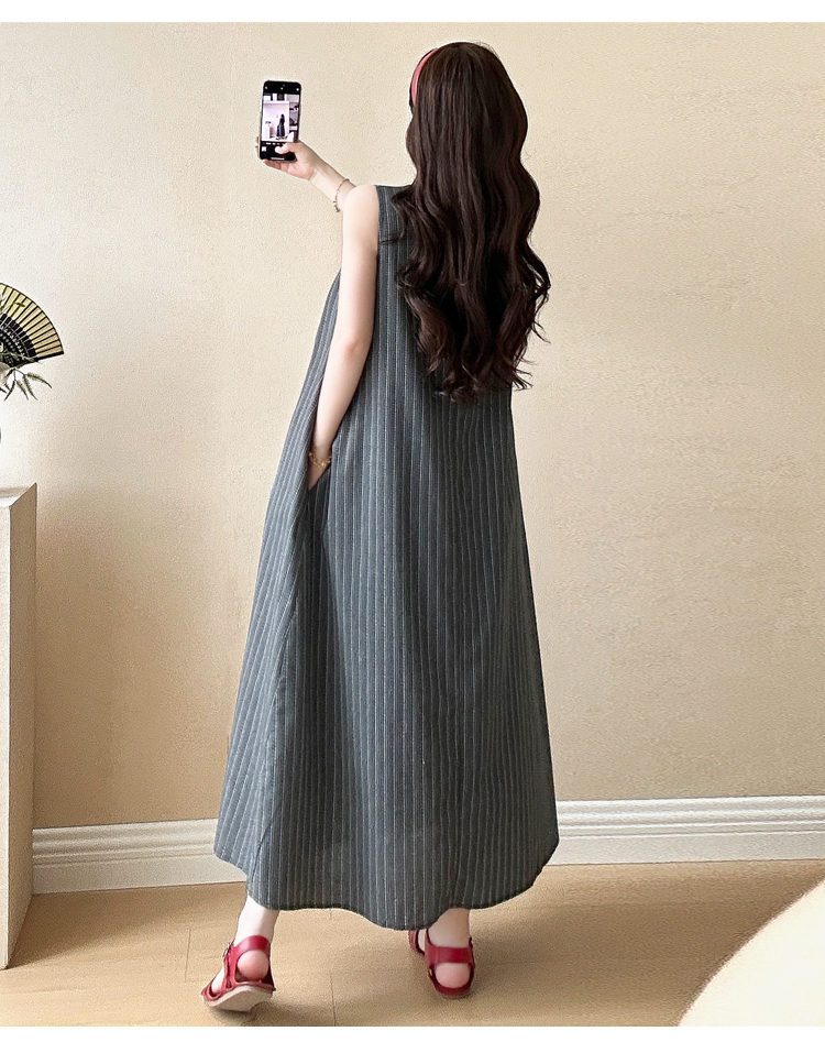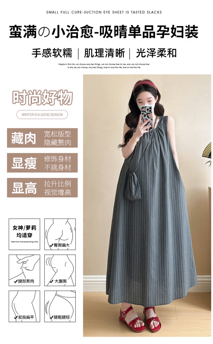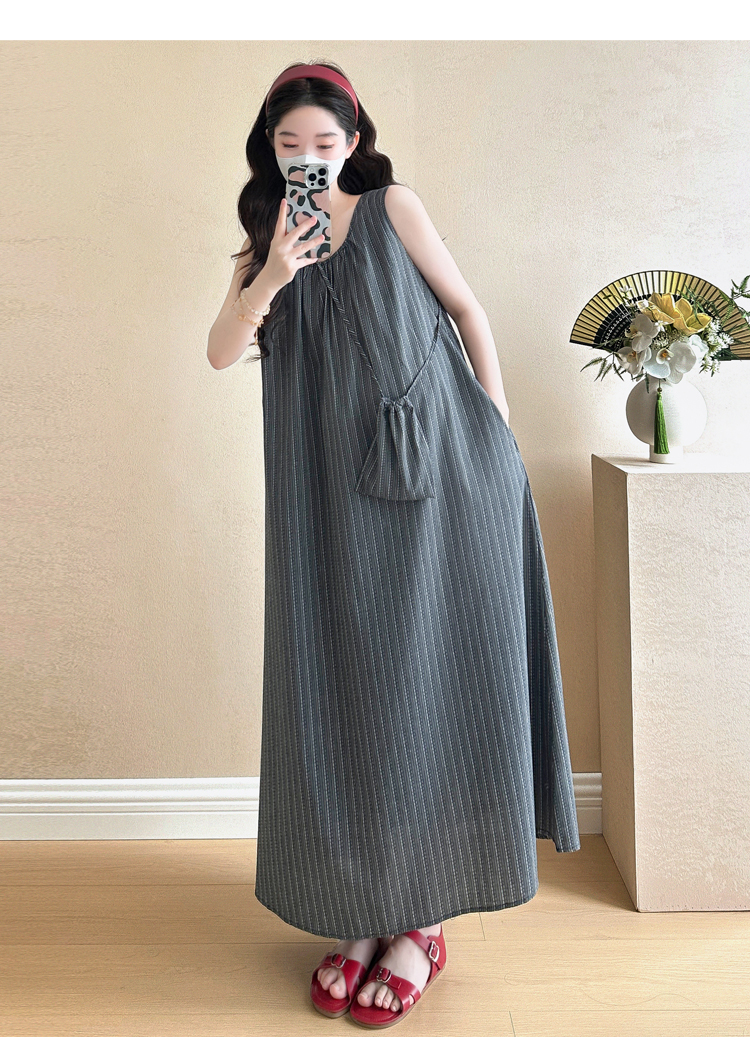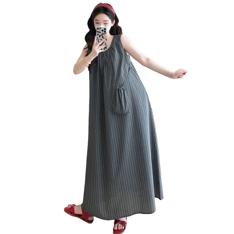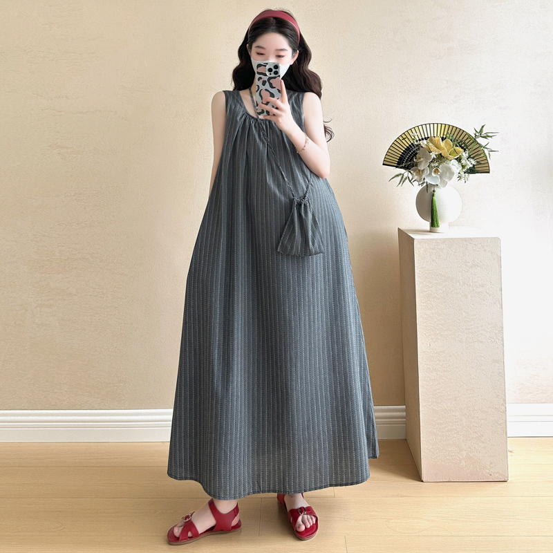 실사 새로운 출산 착용 순면 스트라이프 임산부 조끼 스커트 한국 스타일 느슨함 센스 빅 사이즈 임산부 드레스