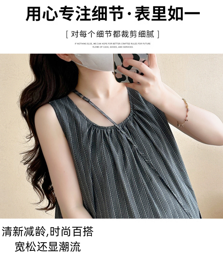 실사 2026 여름 새로운 임산부 조끼 원피스 라운드 넥 맨위 투피스 세트 루즈핏 표지 고기 세트