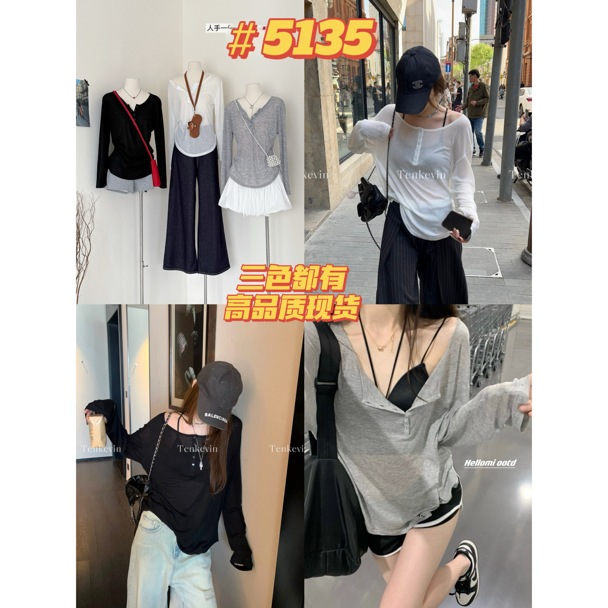 10 하나의 돌 荡荡 느슨함 대 네클라인 루즈핏 라운드 넥 자외선 차단 긴팔 티셔츠 여성 여름 실크 얇은 스타일 캐주얼 맨위
