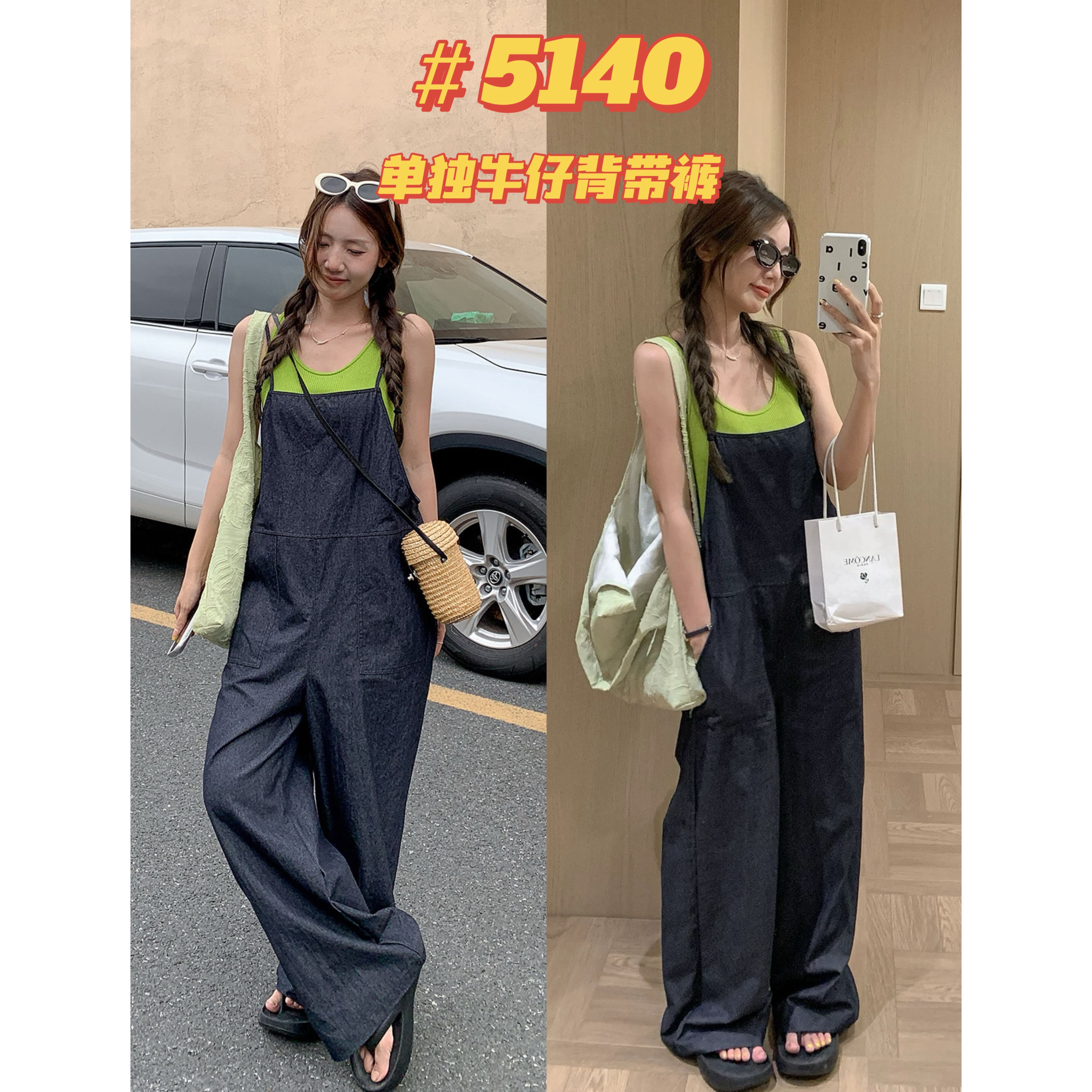 데님 얇은 스타일 하이웨이스트 넓은 다리 길이 바지 여성 2026 여름 새로운 한국 스타일 미니멀리즘 출퇴근 루즈핏 슬림해 보이는 멜빵 바지