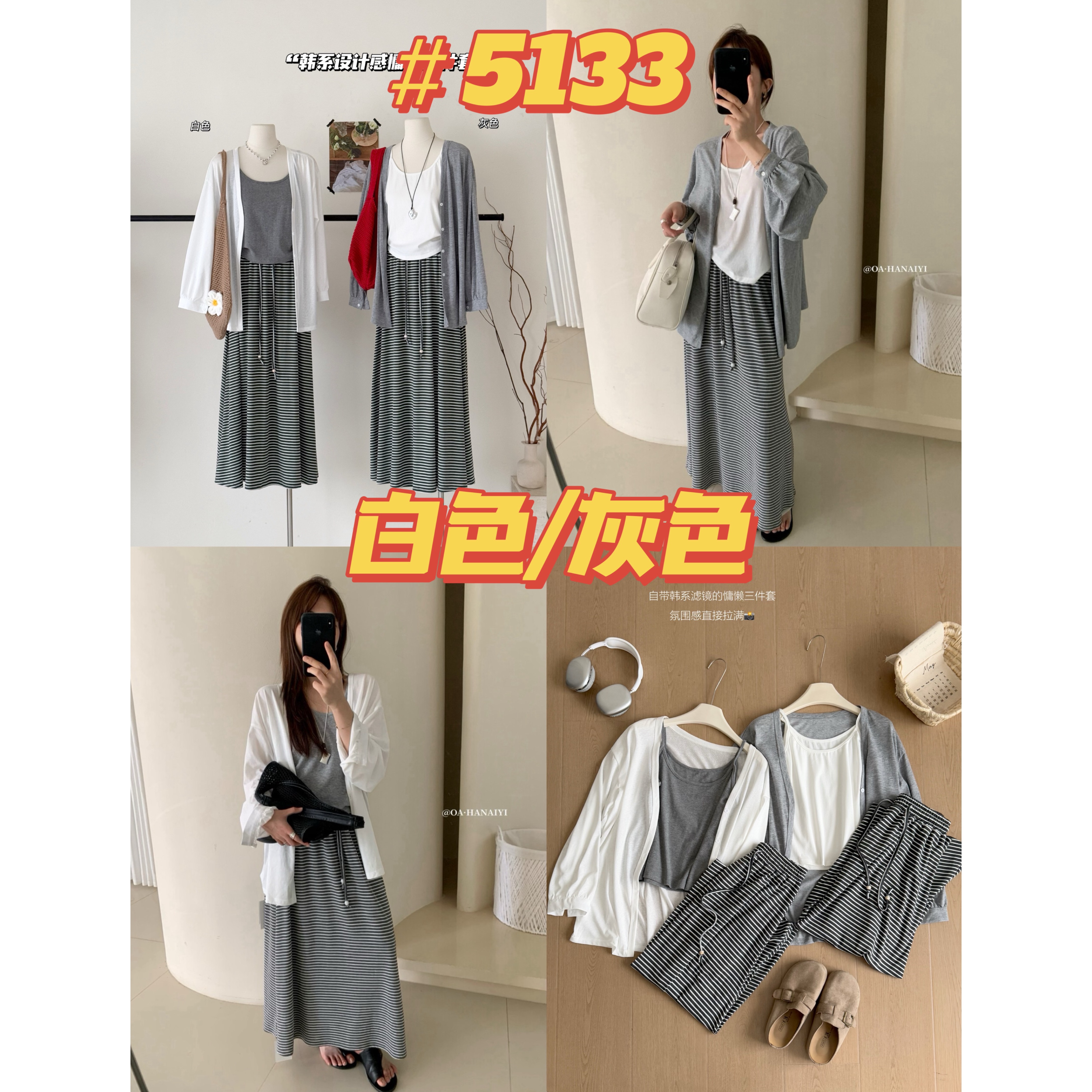 한 부서 느긋한 느슨함 센스 세트 긴팔 오픈 가디건 슬립 스트라이프 반신 스커트 3종 세트 2026 여름 새로운