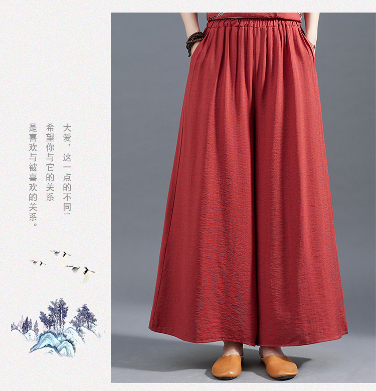 한 부서 면 린넨 베이지 색 도트 무늬 와이드 레깅스 바지 2026 여름 새로운 하이웨이스트 루즈핏 캐주얼 스트레이트 9부 바지