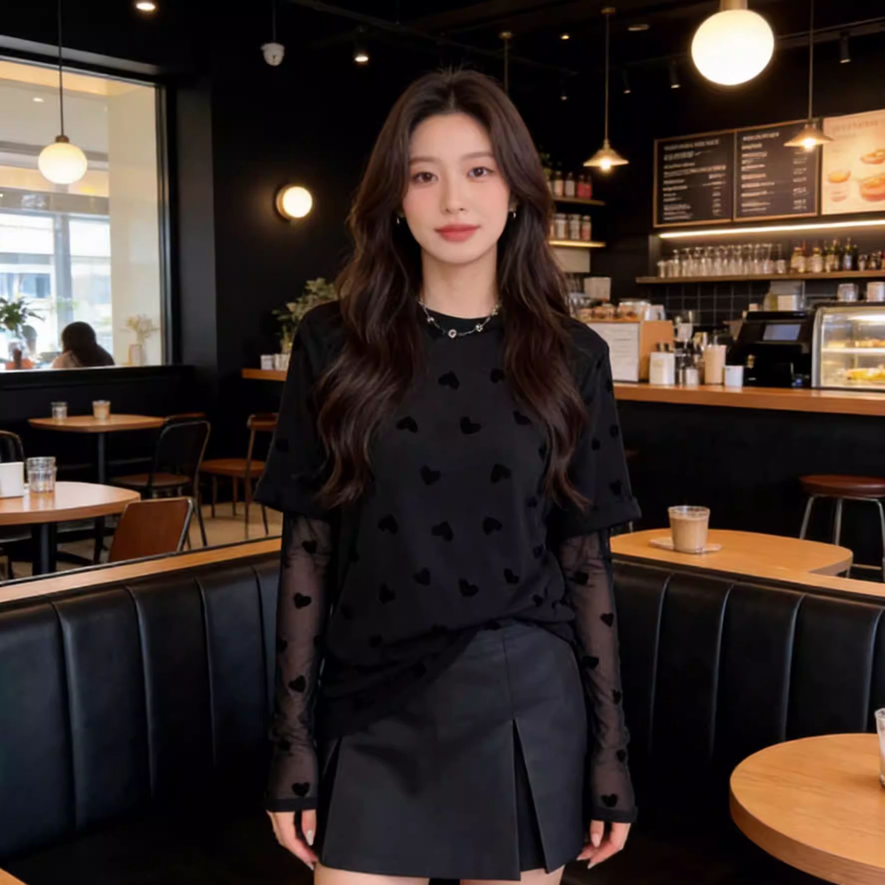 순수한 욕망 바람 레이스 레이스 레이스업 반팔 티셔츠 여성 여름 새로운 페이크 레이어드 몸매 가꾸기 슬림해 보이는 다용도 맨위