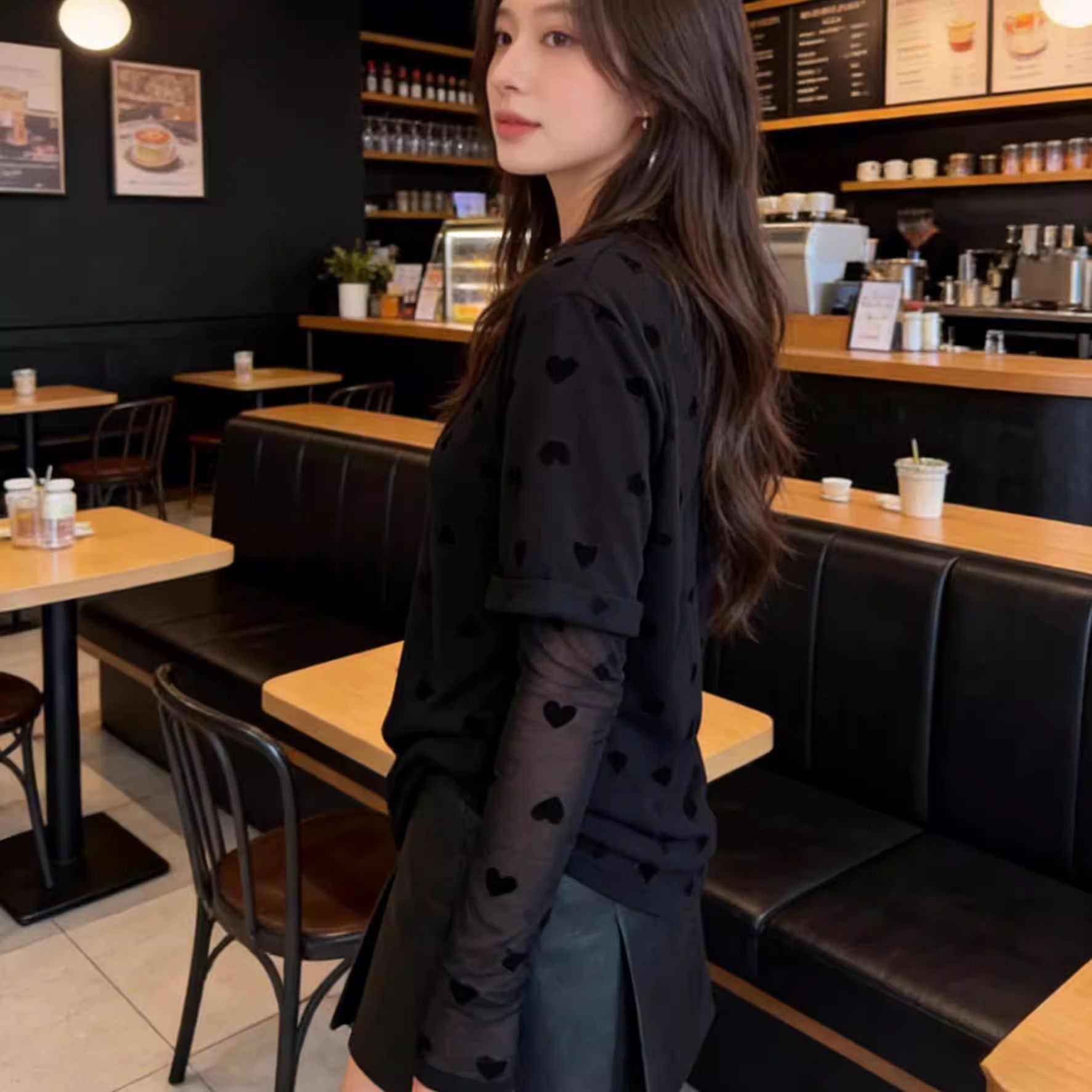 페이 Rees 오후 as official Jiao Di Di 분위기 불규칙 프릴 자카드 슬립 작은 셔츠