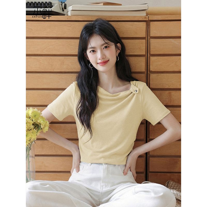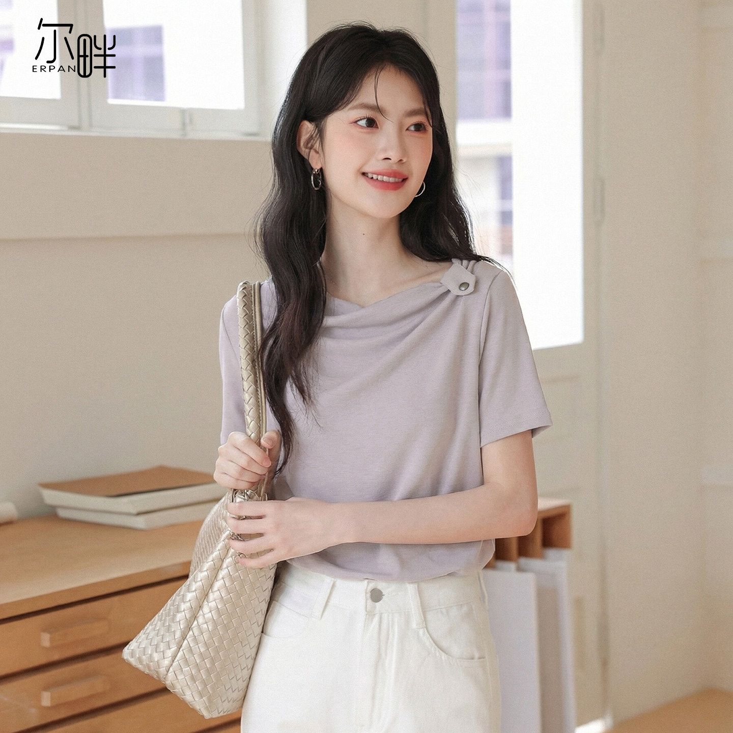 패션 다용도 배색 삽입 어깨 소매 반팔 티셔츠 여성 2026 여름 새로운 몸매 가꾸기 슬림해 보이는 Chic chic 맨위